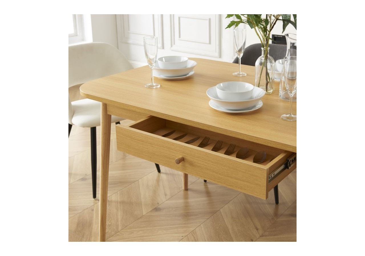 Son atout ? Son tiroir central, très pratique pour y ranger des couverts ou des serviettes par exemple.