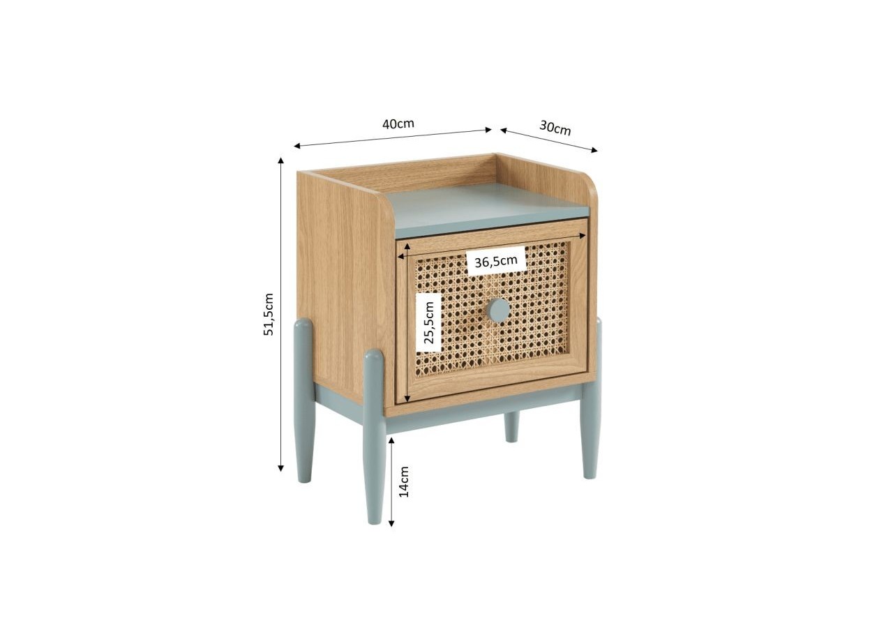 Ses atouts ? Son tiroir en cannage véritable permet à votre enfant d'y ranger ses affaires pour la nuit, ainsi que ses finitions coloris bleu !