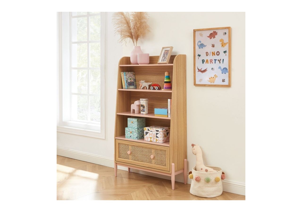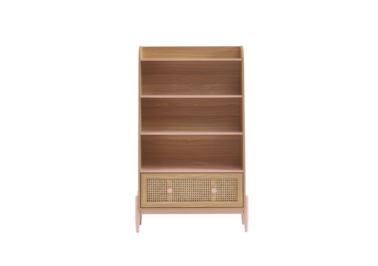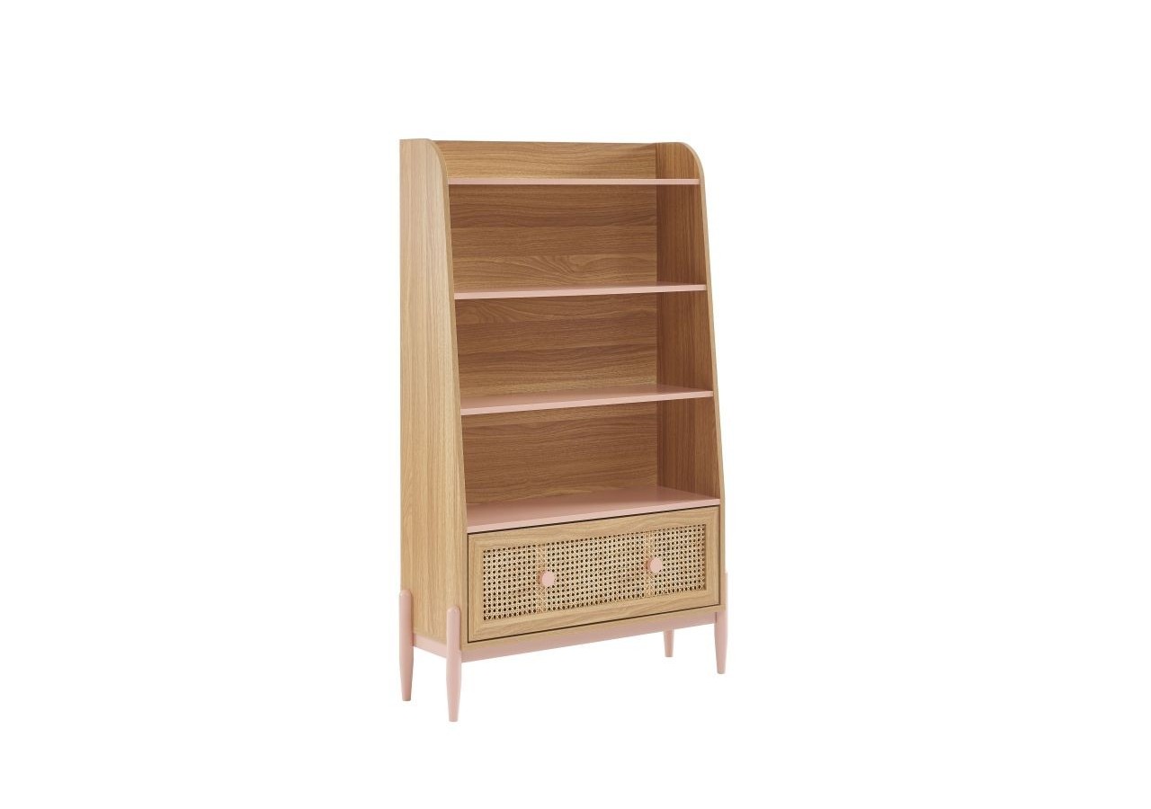 - 3 étagères roses - 1 tiroir avec habillage en cannage véritable - Poignées en bois naturel - 4 pieds en bois massif - Dimensions du produit : L80 x P30 x H140cmLivraison :