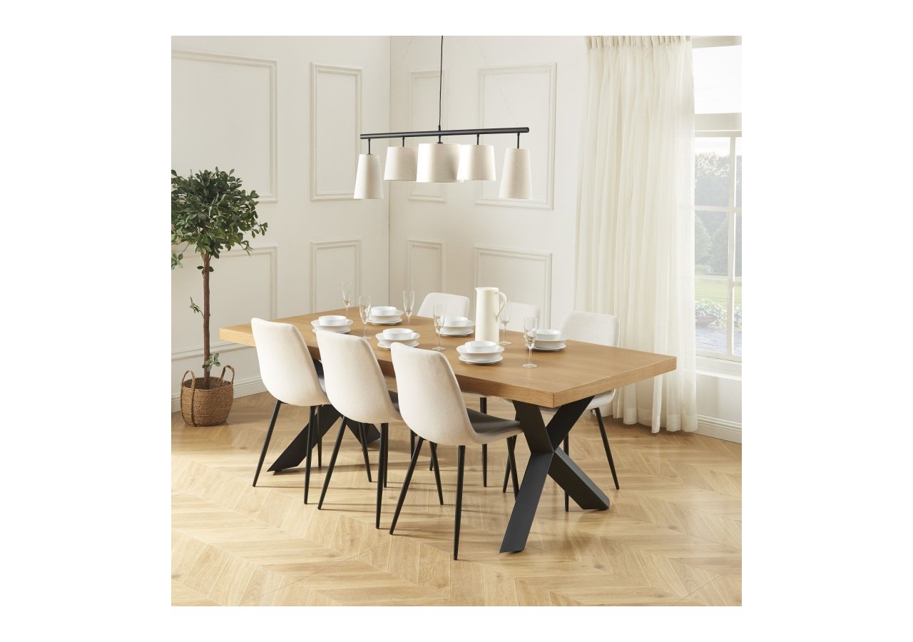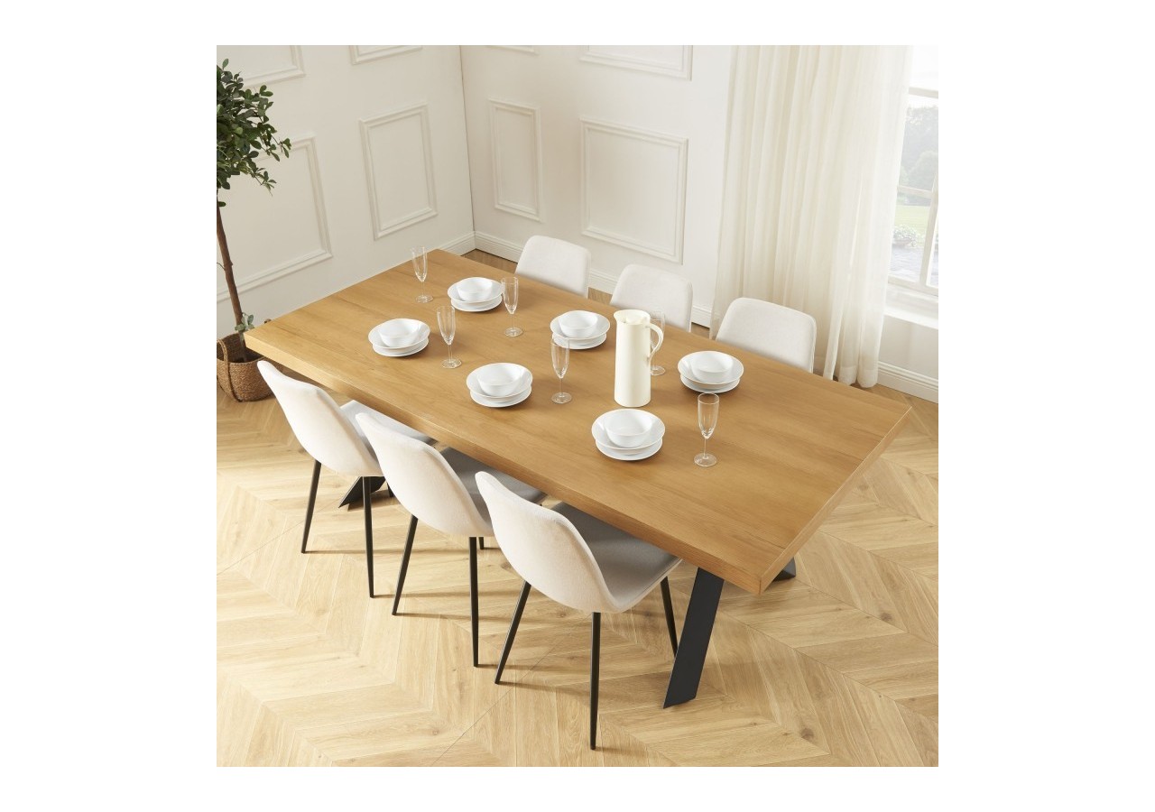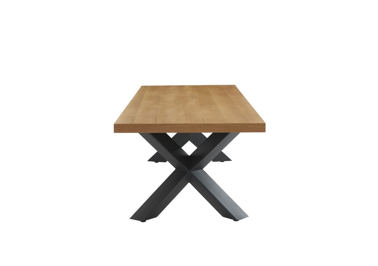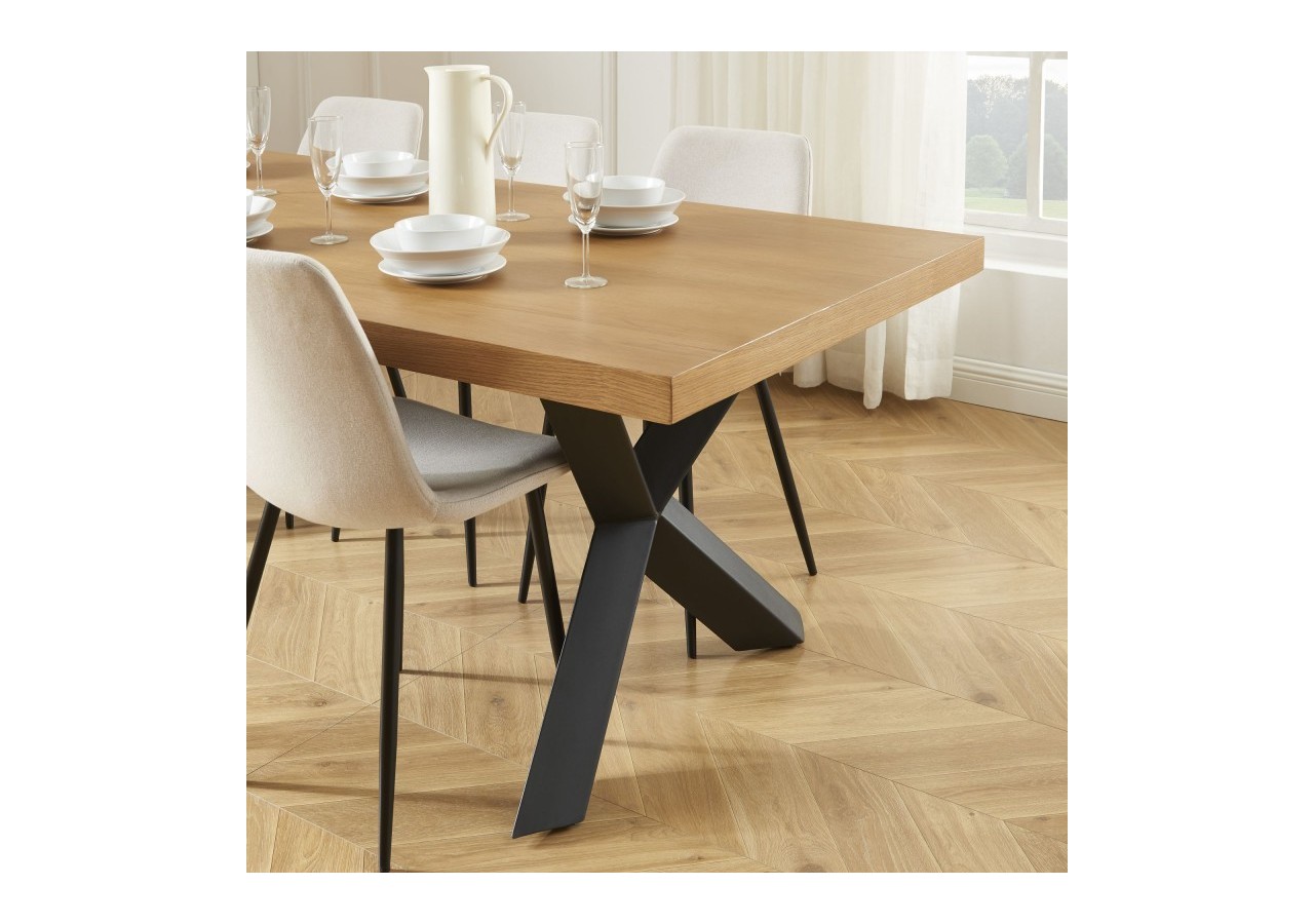 On aime également ces pieds en forme de X en métal noir, qui ajoutent une touche industrielle à la table PLATON. Ils apportent un joli contraste avec le plateau en chêne naturel et s'adaptent parfaitement à de nombreux styles de salles à manger.