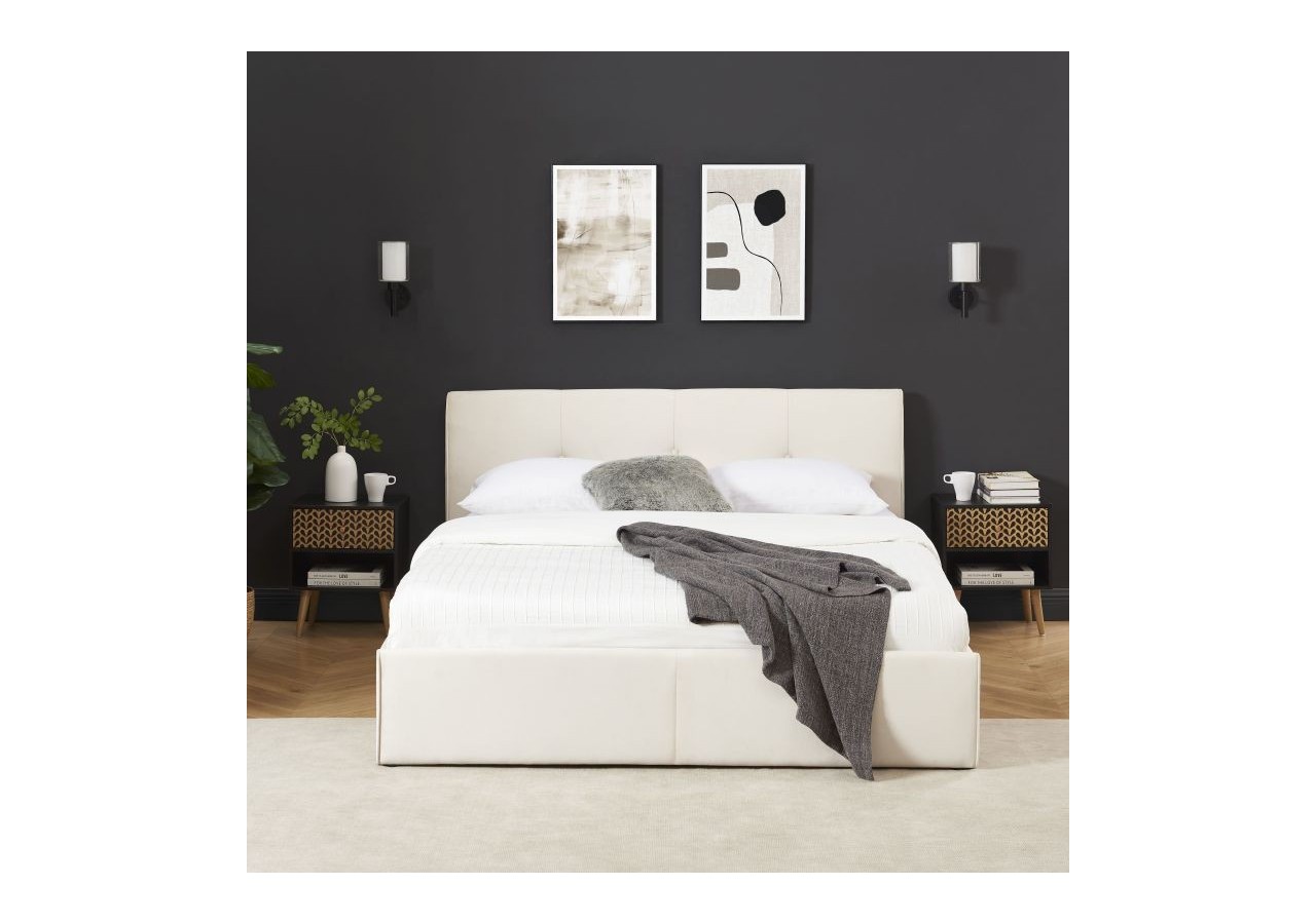 On aime également son revêtement en velours beige crème, à la fois chic et tendance, ainsi que sa tête de lit capitonnée très confortable.