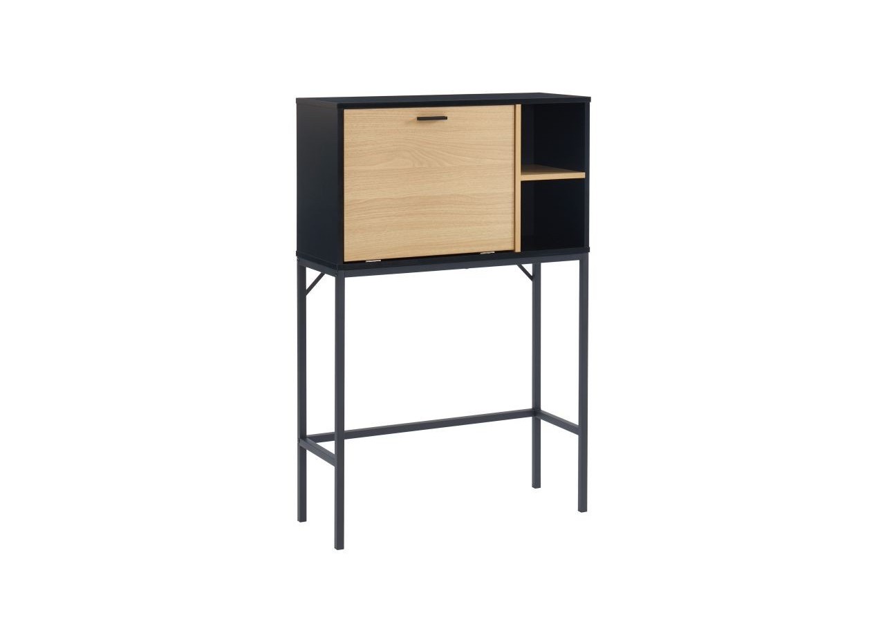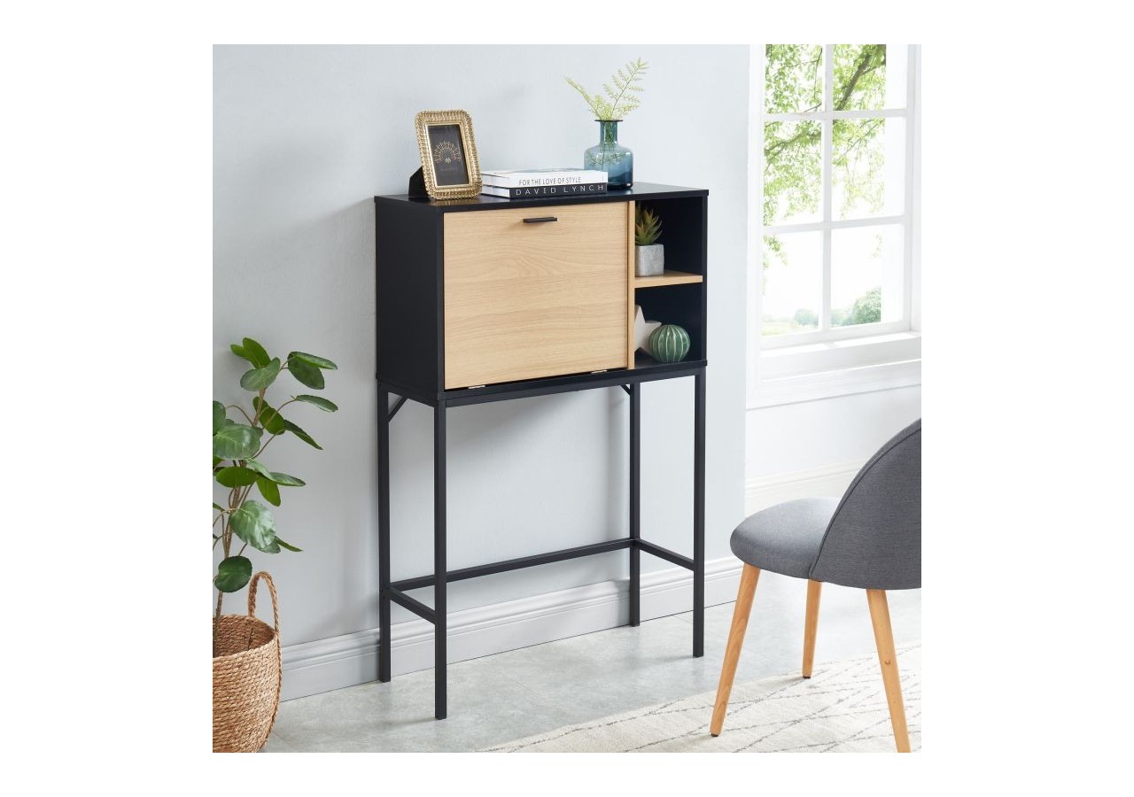 Secrétaire SMART - 1 porte et 2 niches - Structure en panneaux de particules - Revêtement en papier décor noir et effet bois - Pieds en métal noir - Dimensions : L75 x P29,5 x H116.5cm
