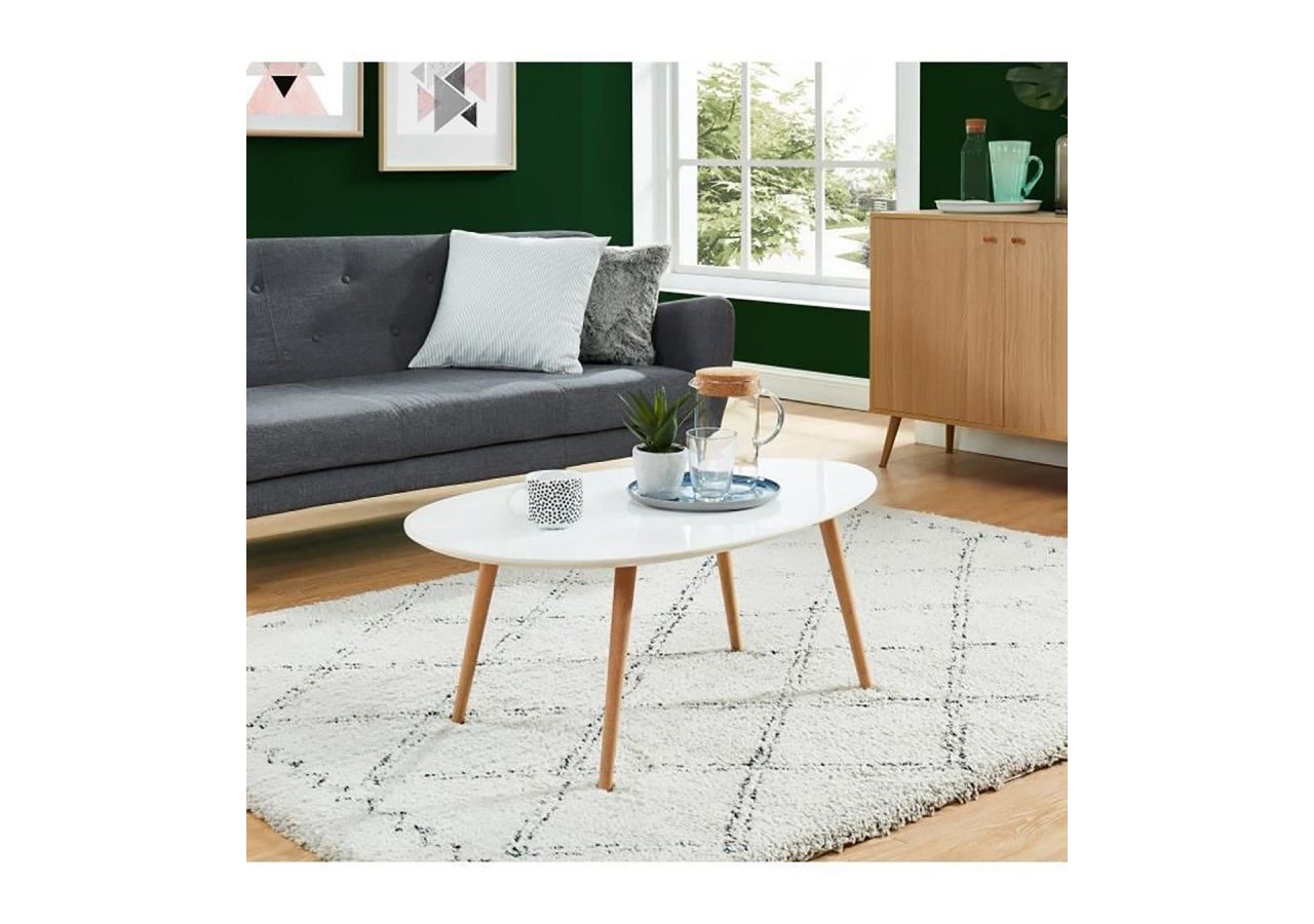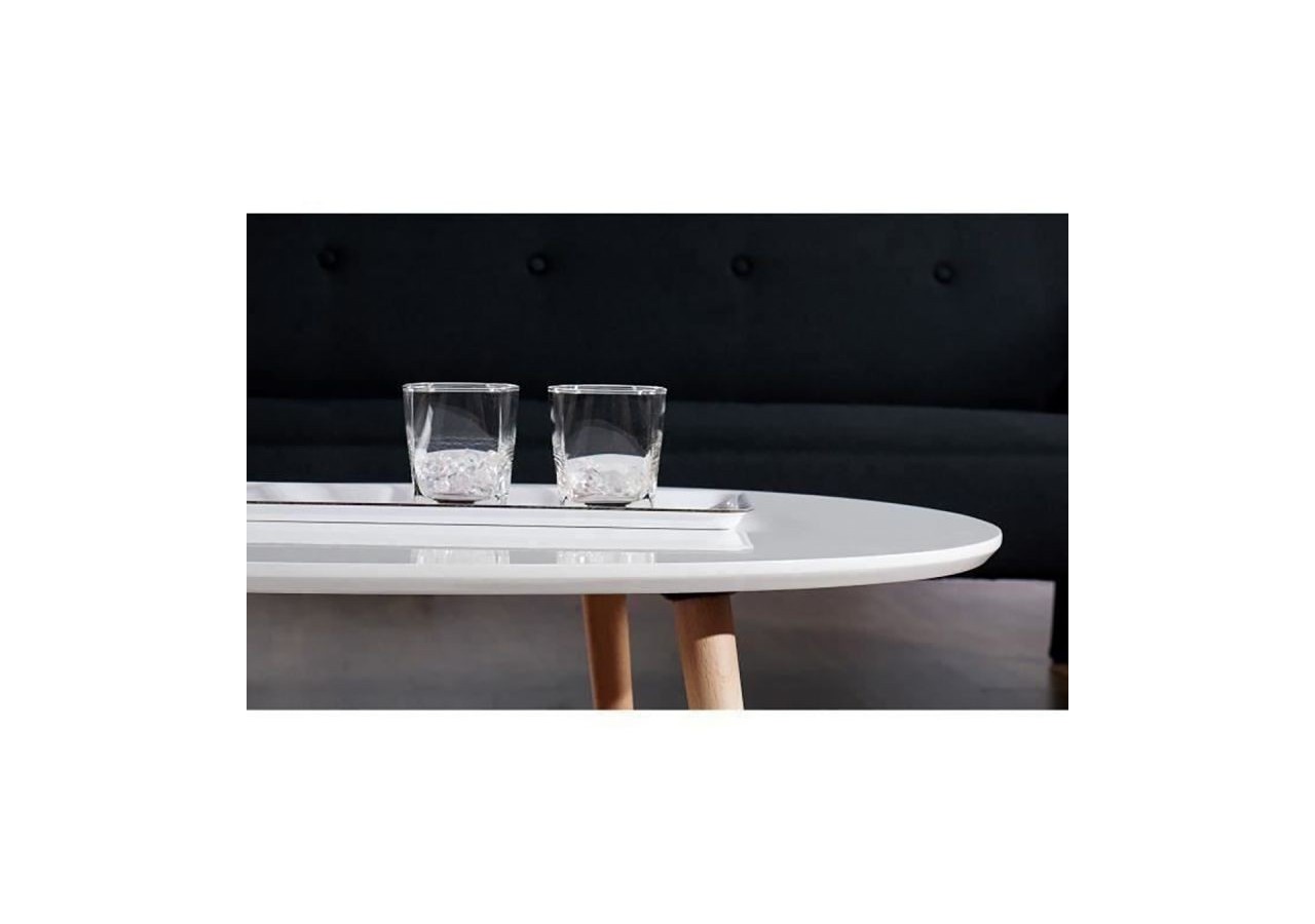 Table basse ovale STONE - Style et design scandinave - Structure en MDF - Finition laquée - Pieds en bois massif - Dimensions produit : L98 x P61 x H39 cm - Table basse vendue à l'unité