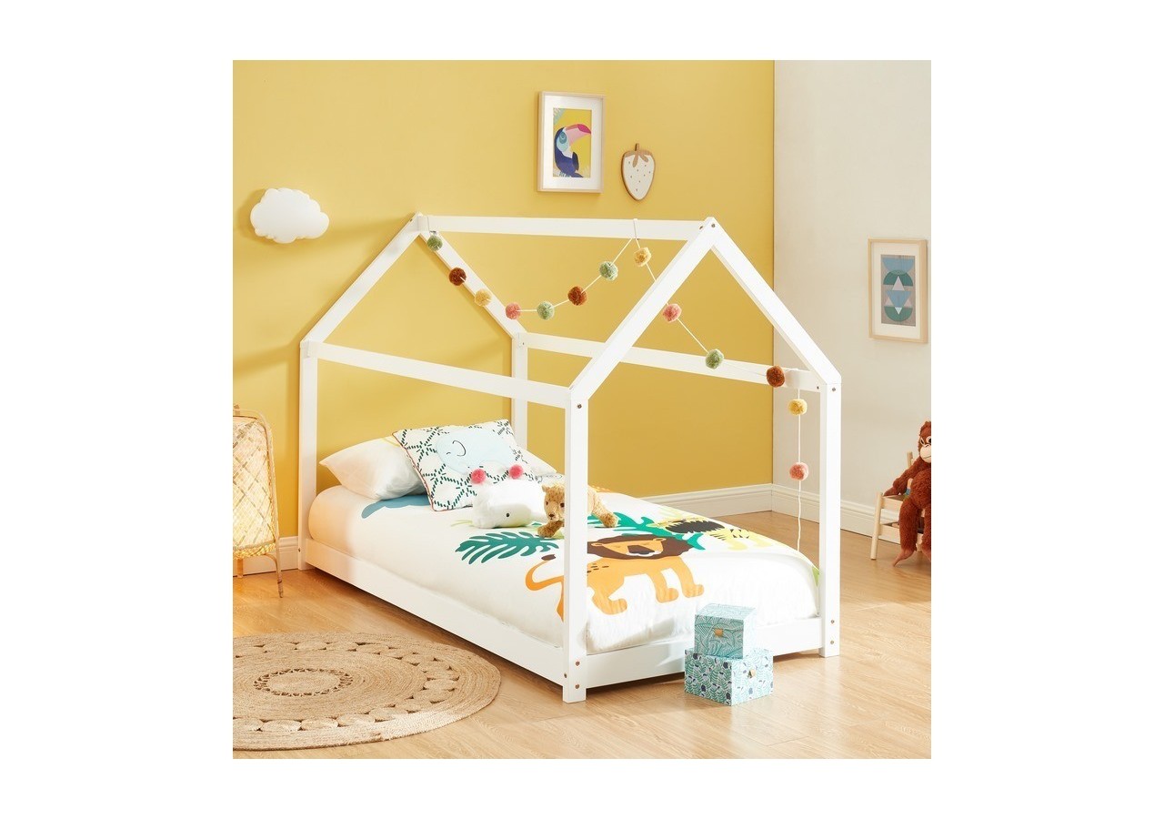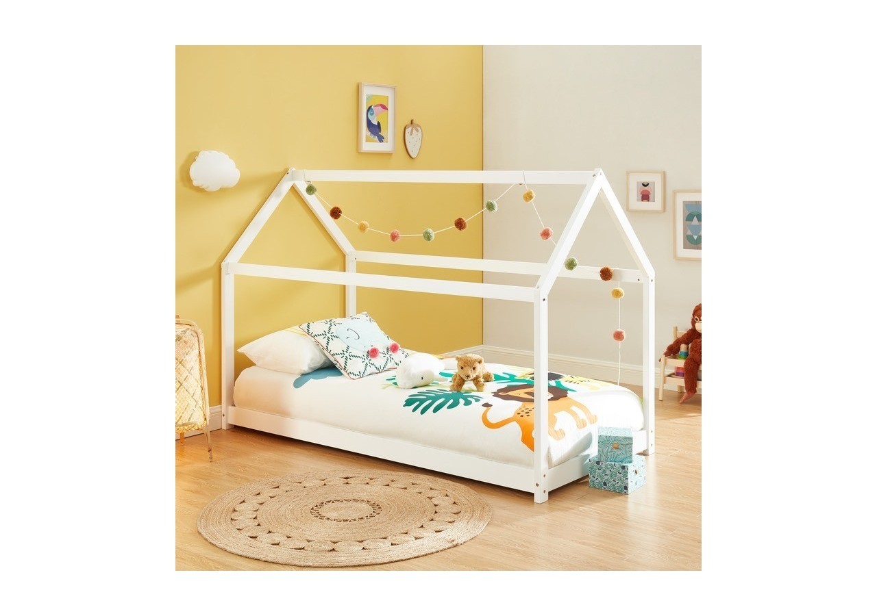 Partez à l'aventure avec le lit cabane blanc TINY ! Avec sa structure en bois massif et son sommier inclus, c'est à la fois un lit et un véritable espace de jeu.