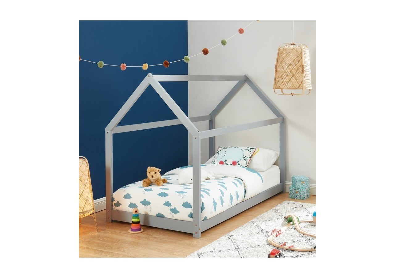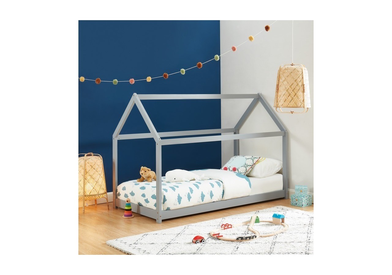Partez à l'aventure avec le lit cabane gris TINY ! Avec sa structure en bois massif et son sommier inclus, c'est à la fois un lit et un véritable espace de jeu.