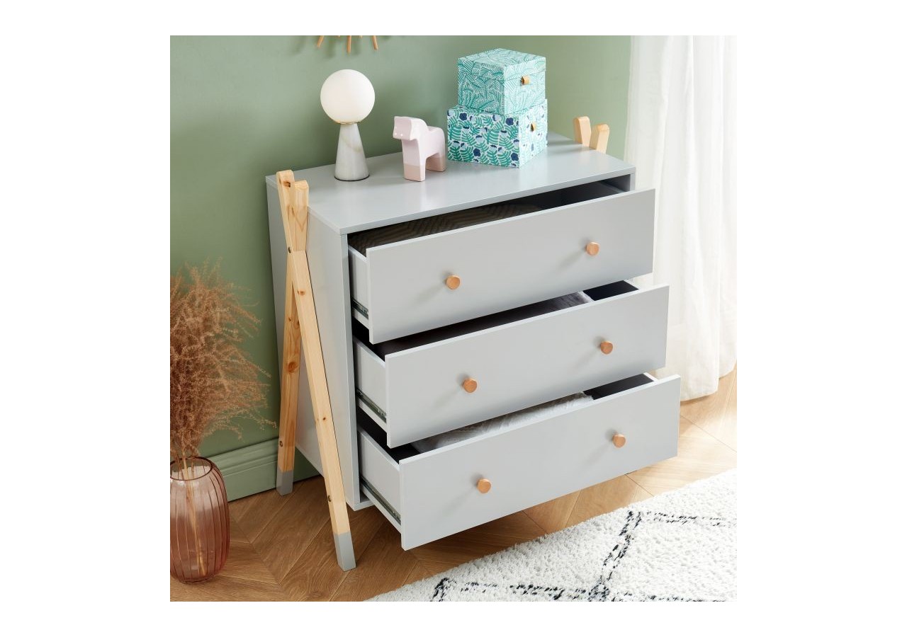 Commode TIPI - Structure en bois massif et panneaux de particules - Revêtement mélaminé gris - 3 tiroirs - Dimensions : L81 x P40 x H85cm