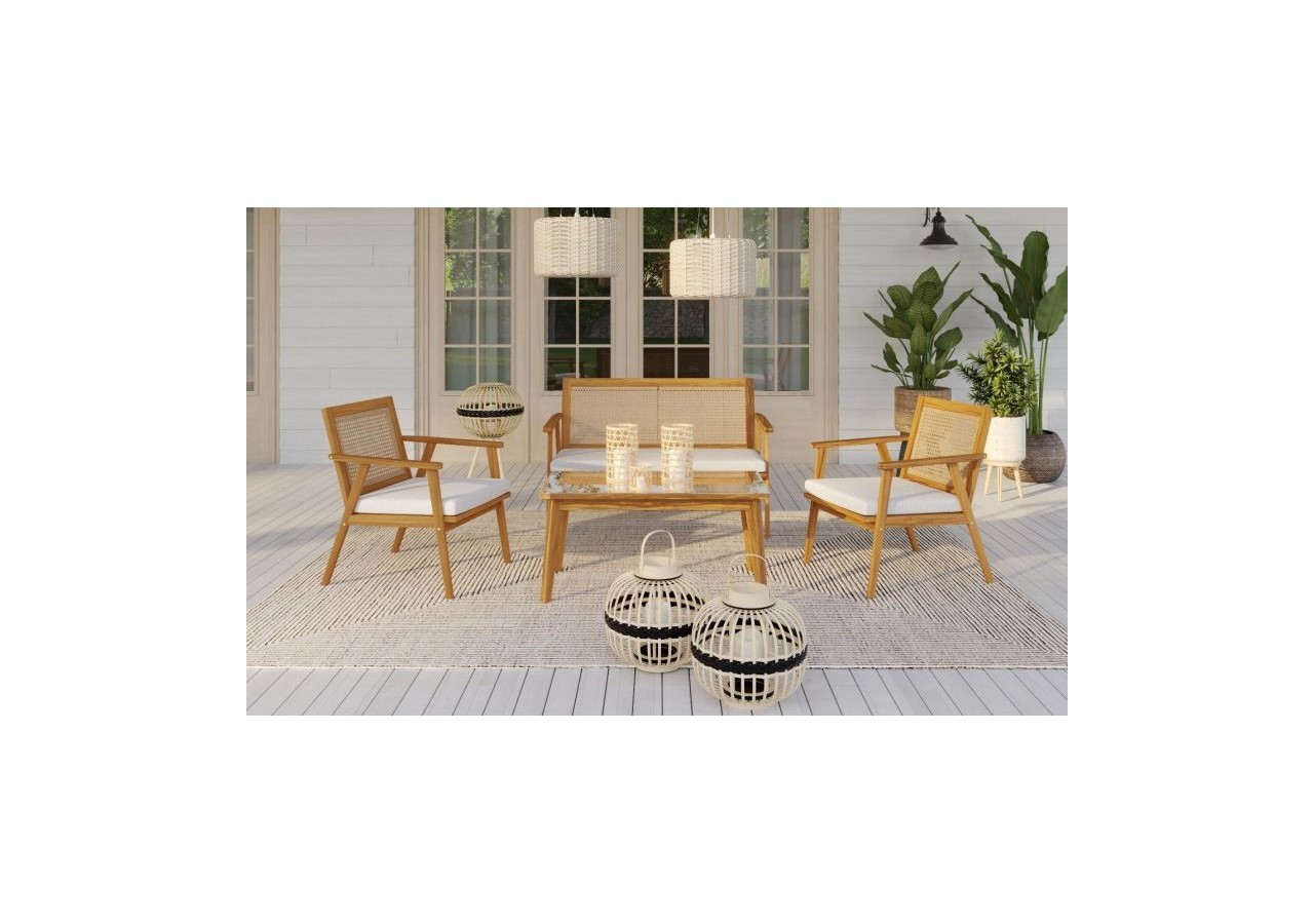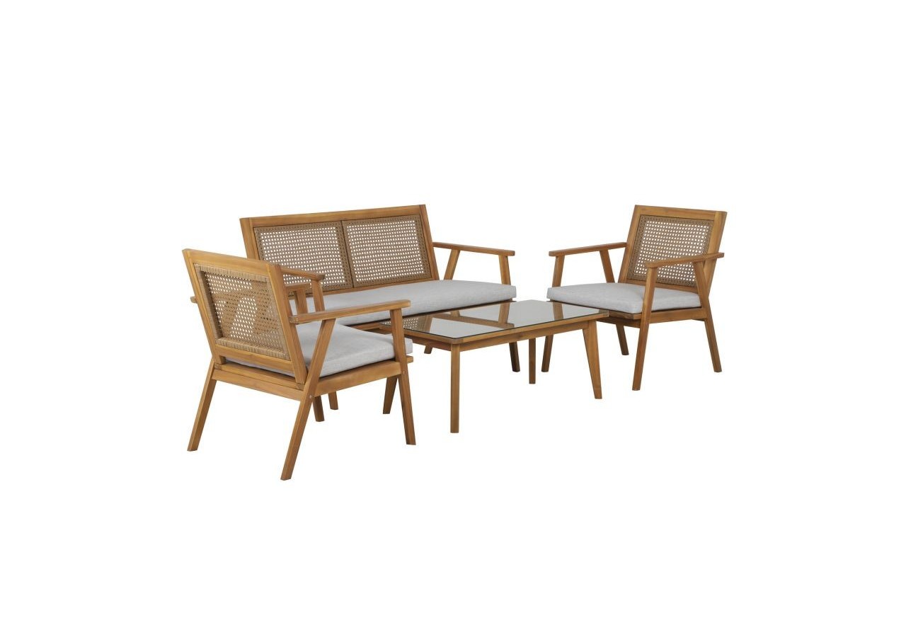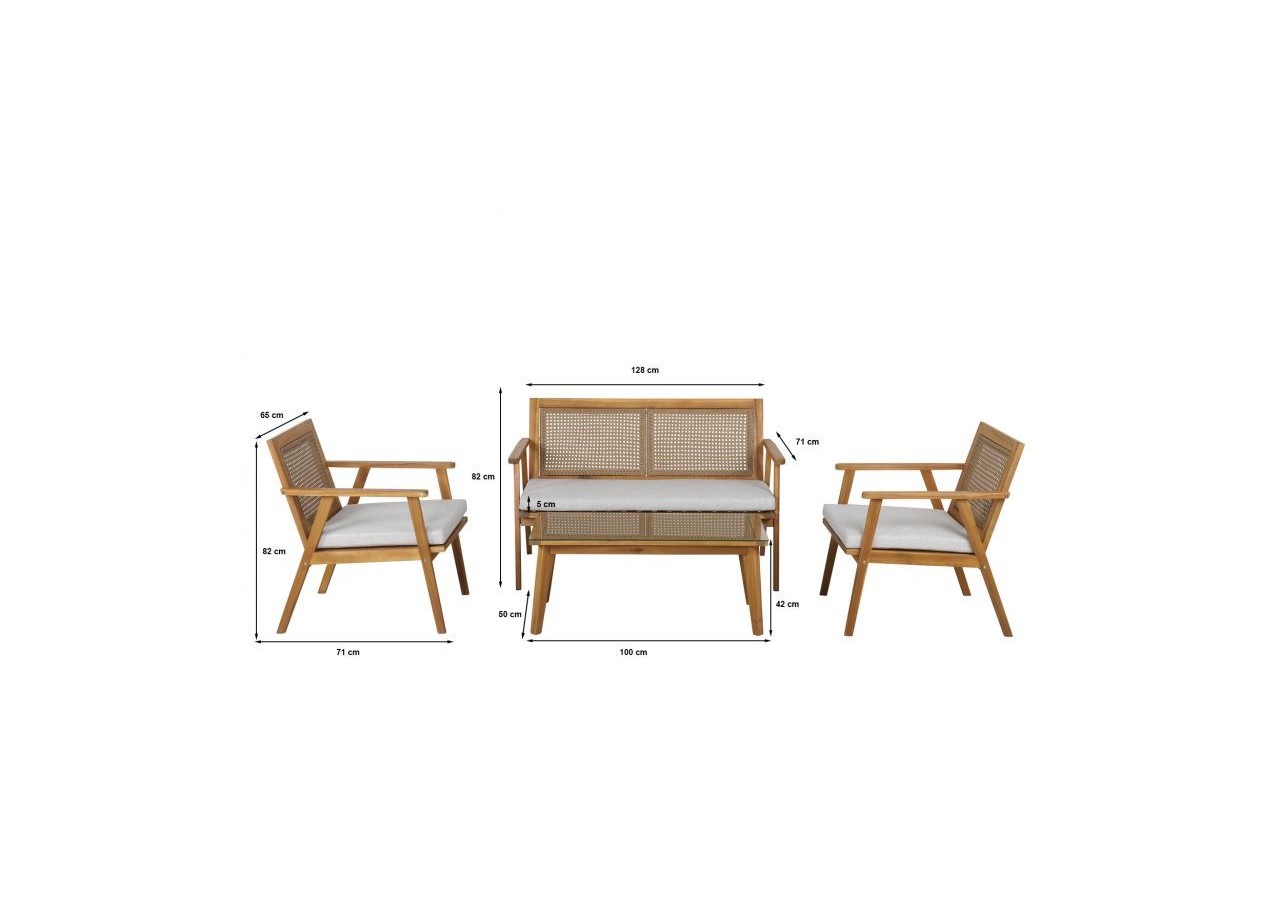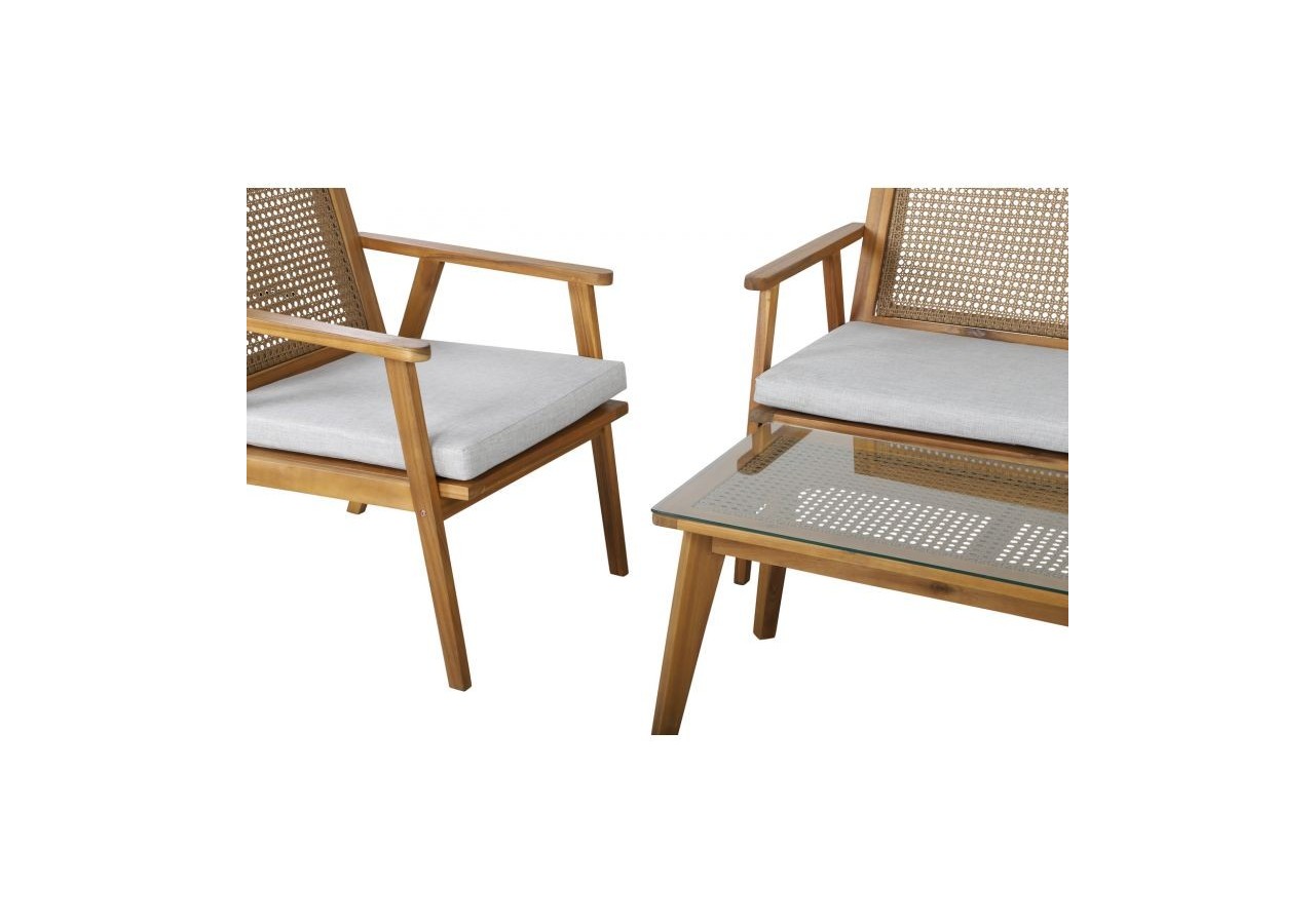 Pour un salon au coloris naturel optez pour le NOTARA. Avec sa structure en bois d'acacia FSC et résine tressée, "style cannage", apportez du charme à votre extérieur.