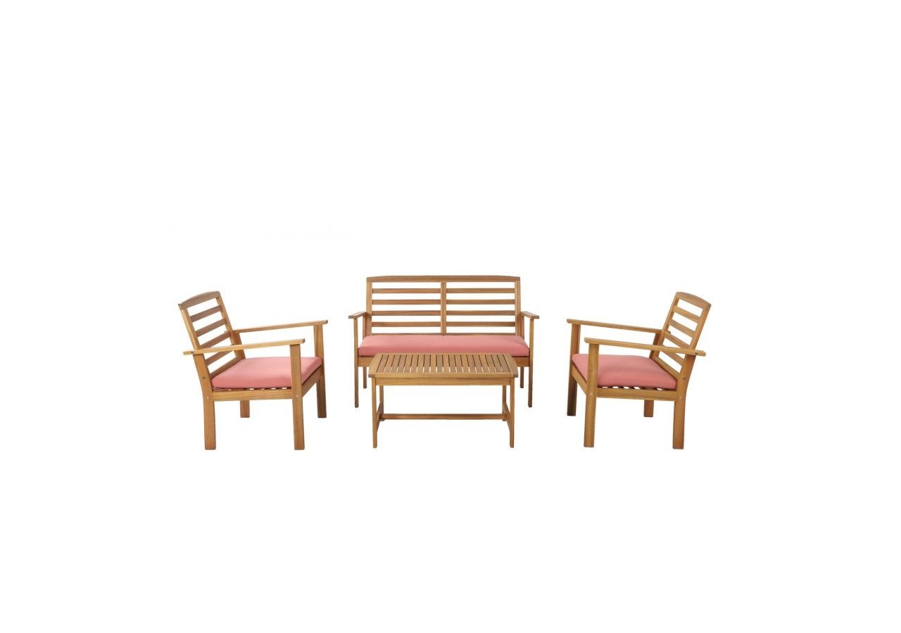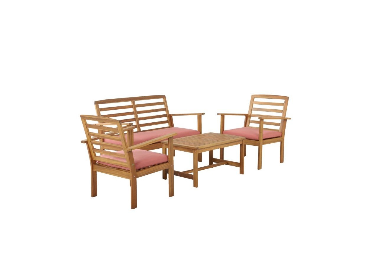 Avec sa structure en bois d'acacia 100% FSC, vous apprécierez sa robustesse. Résistant à l'humidité, au soleil, aux écarts de température, l'entretien se veut rapide et facile. L'ensemble est accompagné de 3 coussins d'assises (1 pour la banquette + 2 pour les fauteuils). Tous sont déhoussables pour un nettoyage facile.