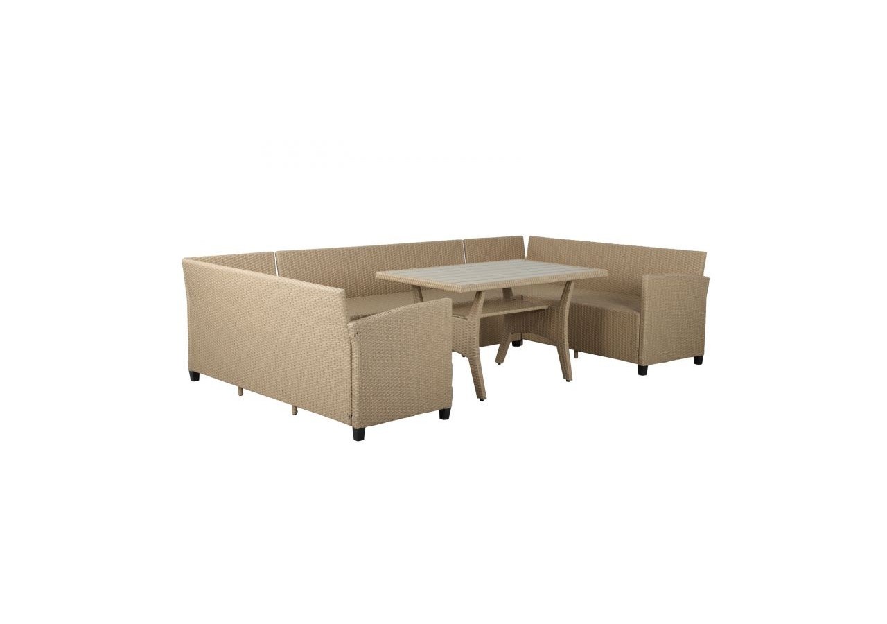 Sa table haute lui donne une fonction de table à manger et son canapé PANORAMIQUE en fait également un salon de jardin cosy et tendance.