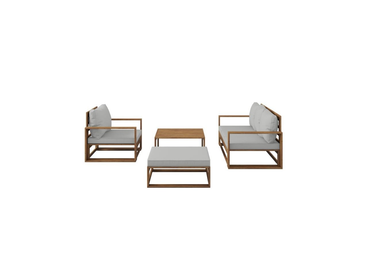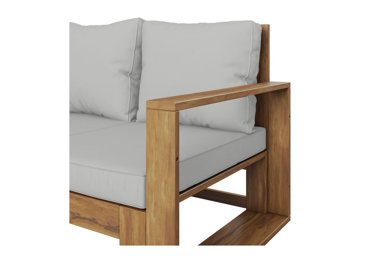 Craquez pour le salon de jardin CAMILA aux coussins gris. En bois d'acacia 100% FSC il apportera une touche exotique à votre extérieur.