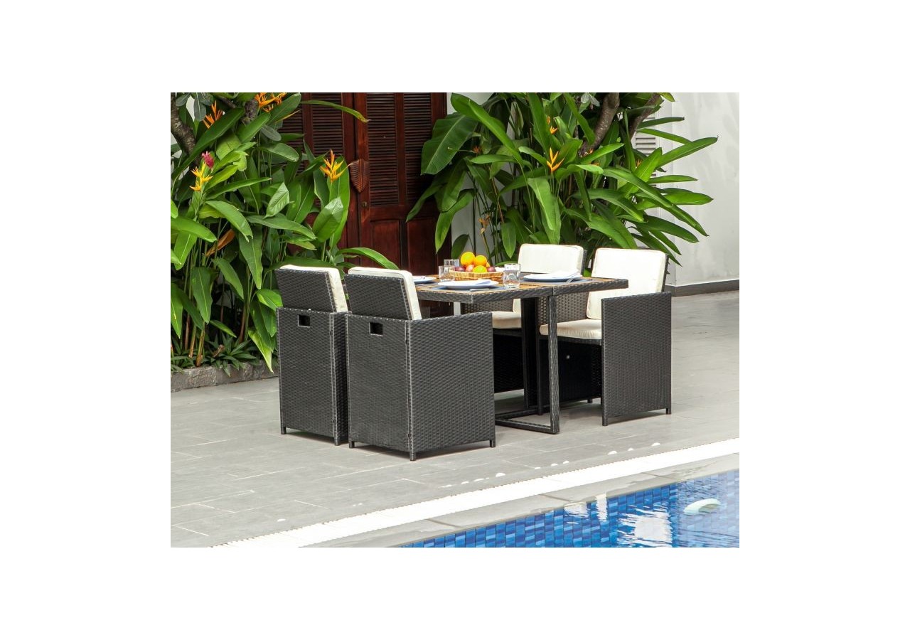 Cet ensemble est composé d'une table et de 4 fauteuils vous permettant d'accueillir jusqu'à 4 convives pour un déjeuner ou dîner entre amis/famille.