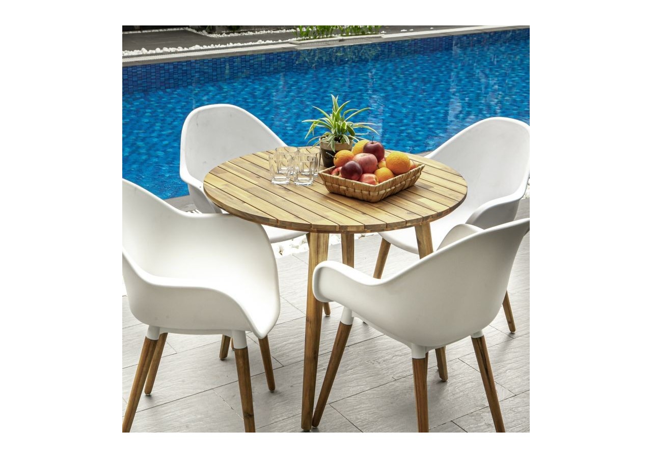 Sa forme ronde, permet un gain de place afin d'optimiser votre espace. Elle s'accordera parfaitement avec des chaises moderne ou au design plus vintage.