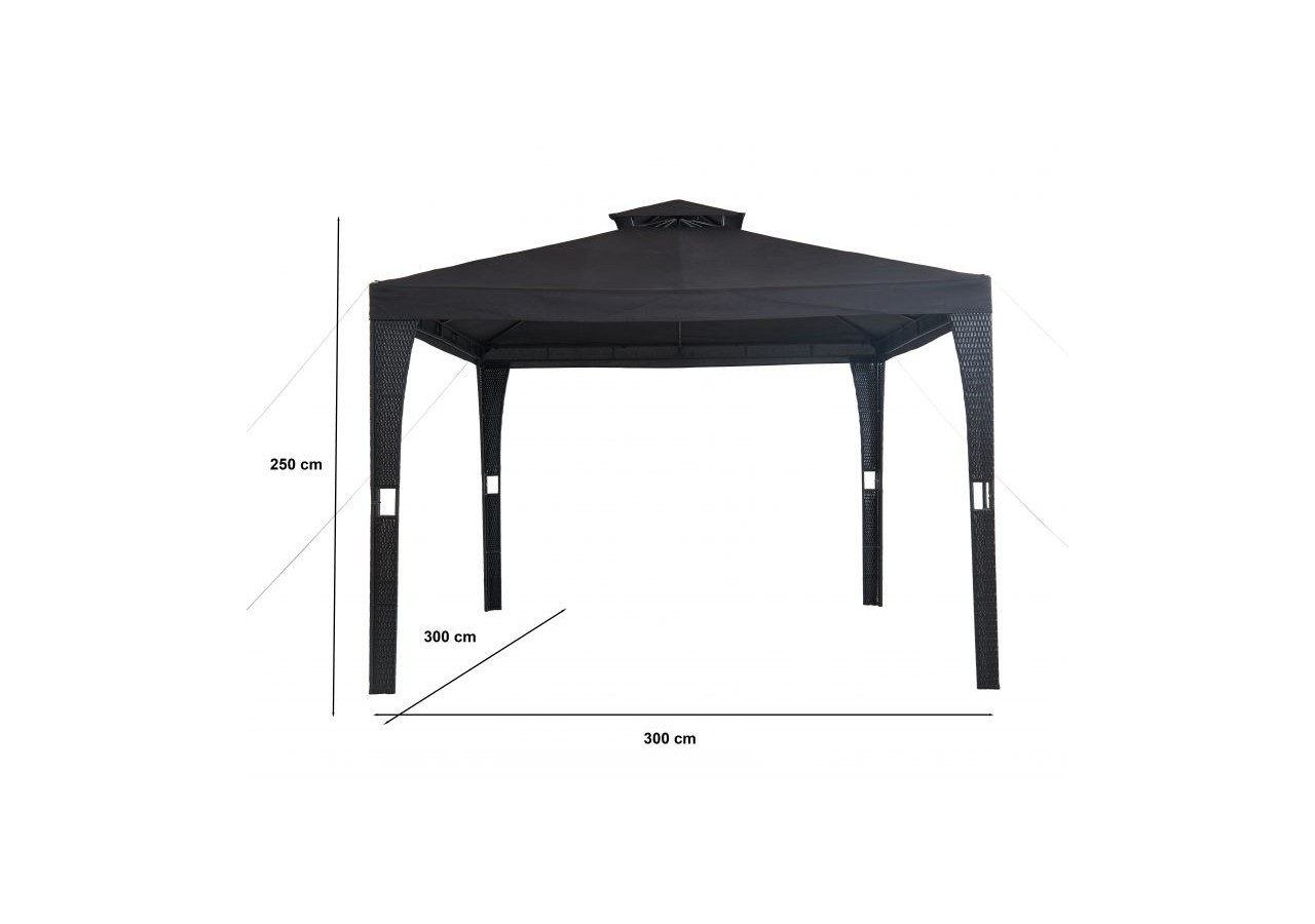 La tonnelle LILAS mesure 3 x 3 m et peut accueillir un salon de jardin de 2 à 4 places, idéal pour recevoir vos proches et partager des moments de convivialité. Sa structure en acier traité époxy, sa forme carrée et sa cheminée d'aération lui confère une bonne solidité et de la robustesse.