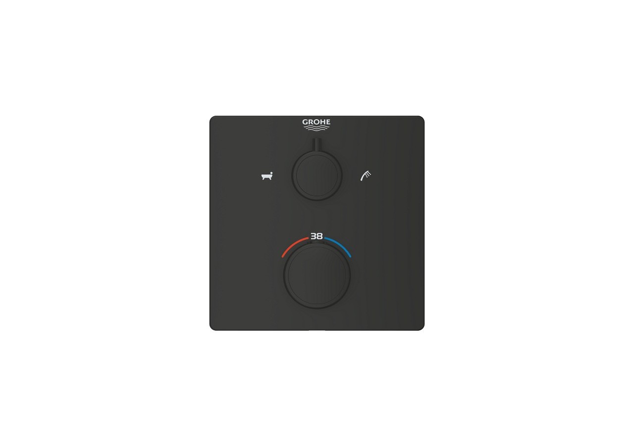 La garniture du mitigeur thermostatique de bain GROHE Grohtherm noir mat constitue l'élément final parfait pour votre baignoire, conçue pour vous permettre de basculer sans effort entre l'entrée de la douche et celle de la baignoire. Contrôlez facilement le débit grâce à l'action simple de GROHE AquaDimmer qui vous permet de diriger l'eau sans effort là où vous le souhaitez tout en réglant simultanément le volume. Le design carré et net vous invite à interagir avec les commandes intuitives, et le profil mince (plaque murale de 10 mm, projection totale de 43 mm) est idéal pour les projets minimalistes. Doté d'une technologie de pointe et
