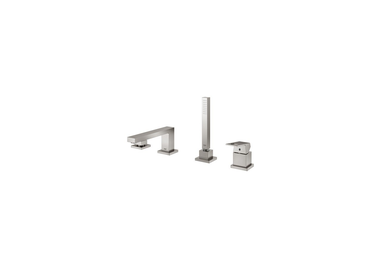 Avec son design simple et minimaliste, le mitigeur de baignoire monocommande GROHE Eurocube avec douchette à main s'intègre parfaitement dans toute salle de bains moderne.