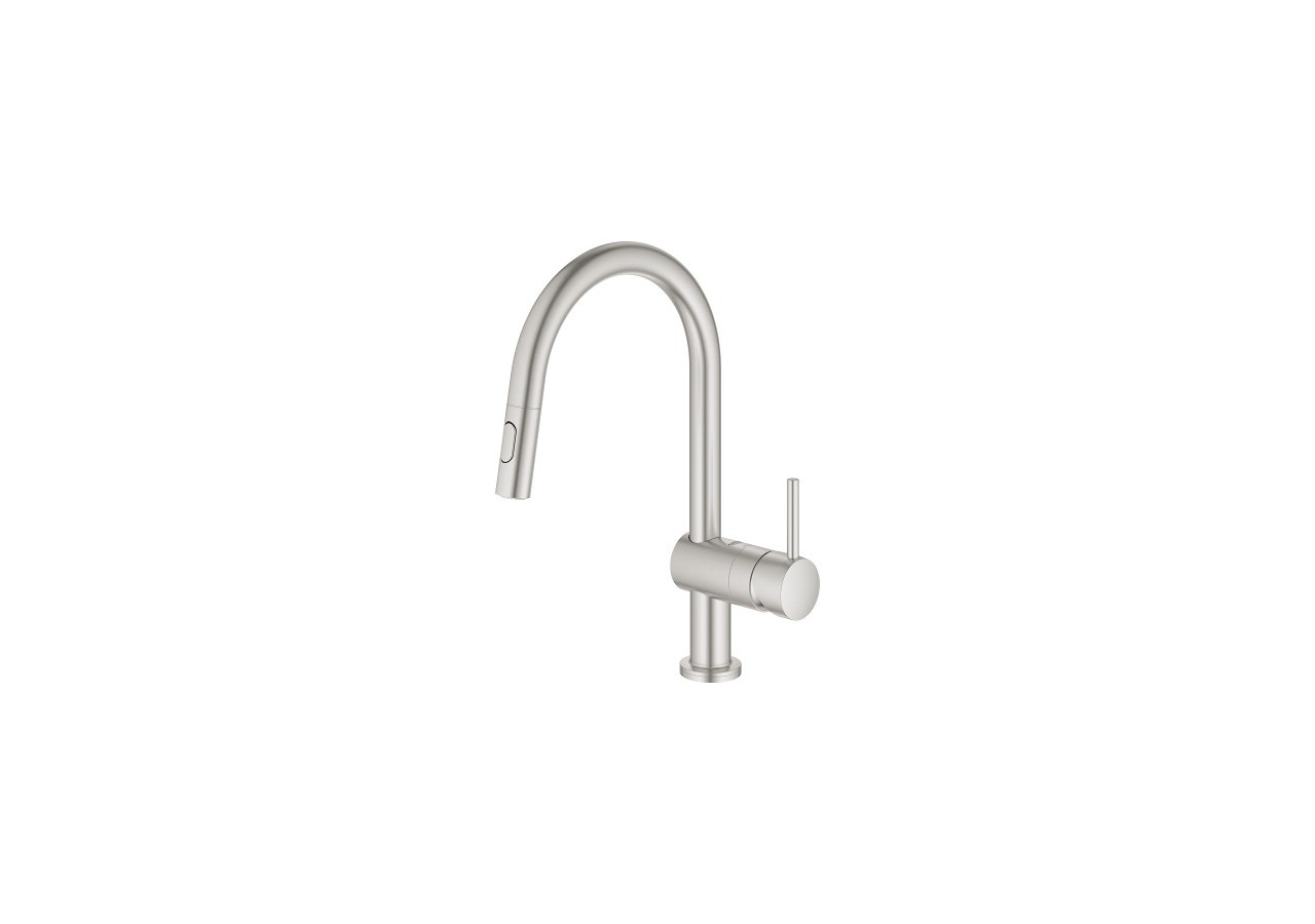 Grâce à la finition chromée durable GROHE SuperSteel, le robinet de cuisine restera impeccable même après des années d'utilisation. Le robinet monocommande Minta Touch est doté d'un bec haut en forme de C avec une plage de pivotement à 360°, ce qui laisse suffisamment d'espace pour remplir de grands récipients. Le jet confort extractible peut être facilement commuté entre un jet puissant et un jet fin, idéal pour laver les casseroles et les poêles et nettoyer l'évier.