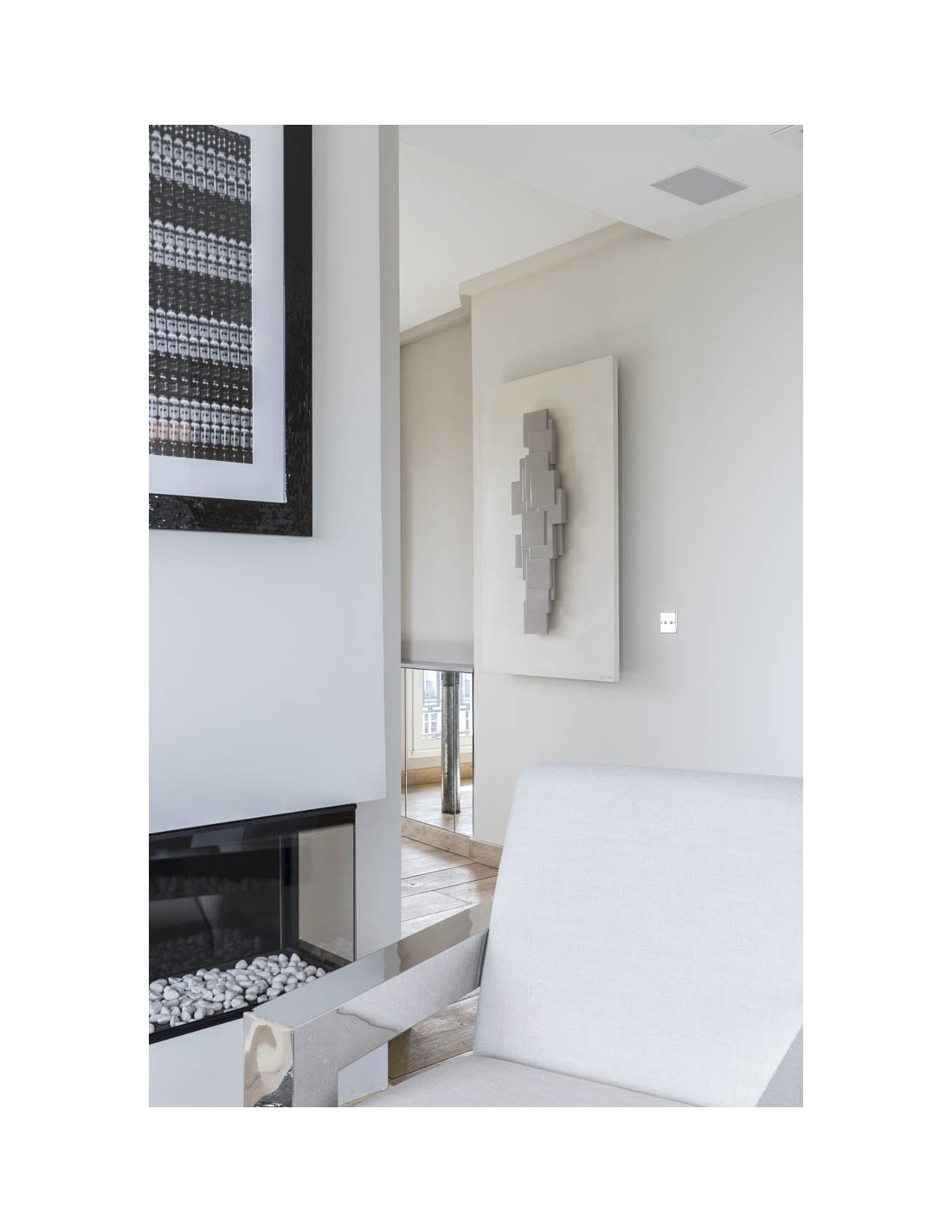 Radiateur sobre blanc avec une structure en relief à 3 cm du radiateur