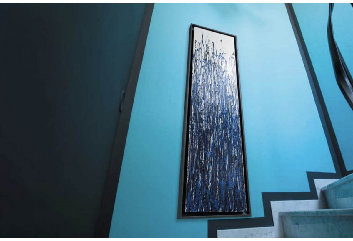 Radiateur au design océanique tel un jardin imaginaire teinté de bleu.