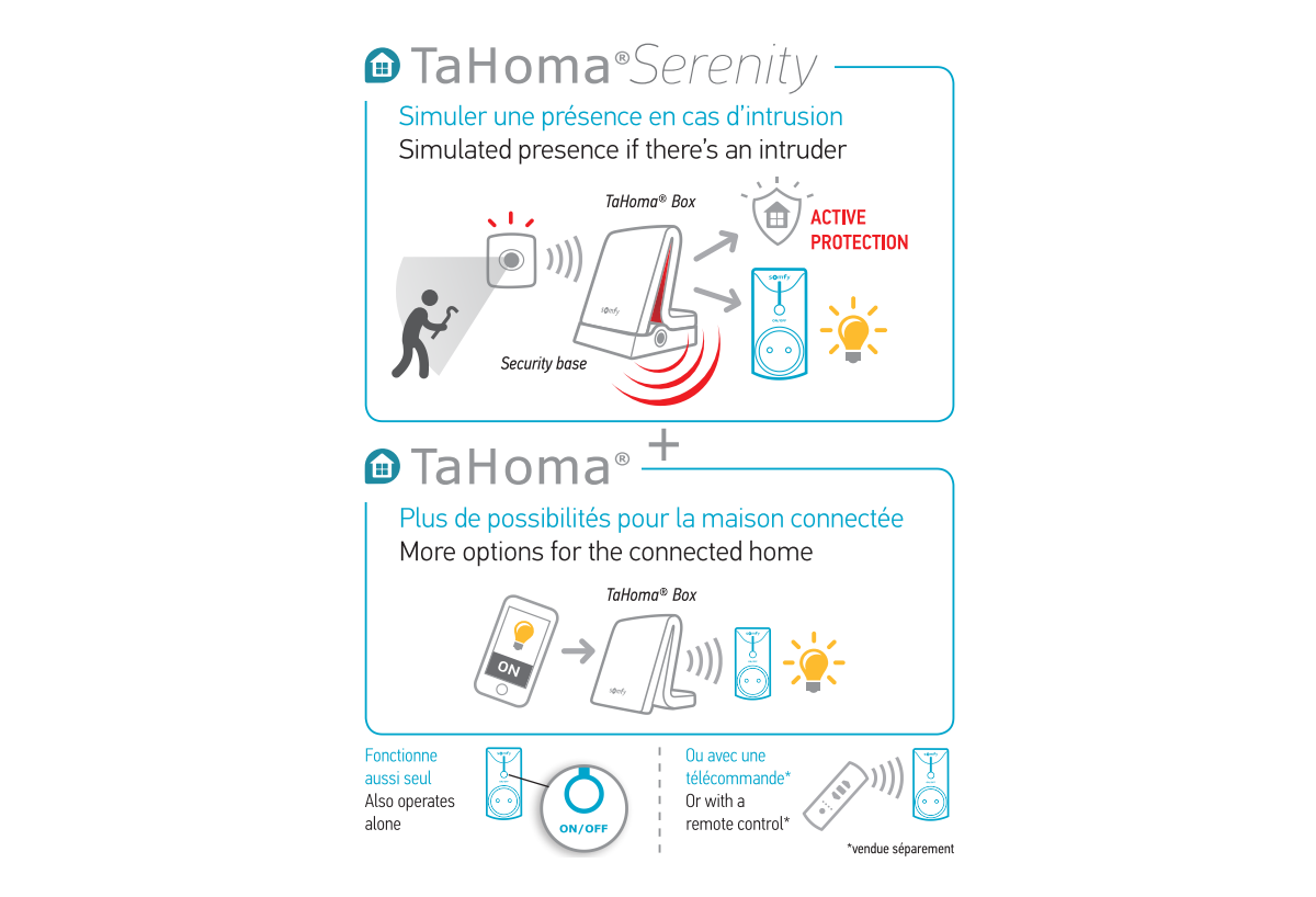 Vous pouvez l'utiliser pour piloter l'éclairage d'une pièce mais aussi pour couper l’alimentation des appareils en veille et ainsi réaliser des économies sur vos consommations électriques. La prise télécommandée est également compatible avec la box domotique TaHoma vous permettant de créer des programmations horaires, des scénarios mais aussi de la piloter depuis votre smartphone.