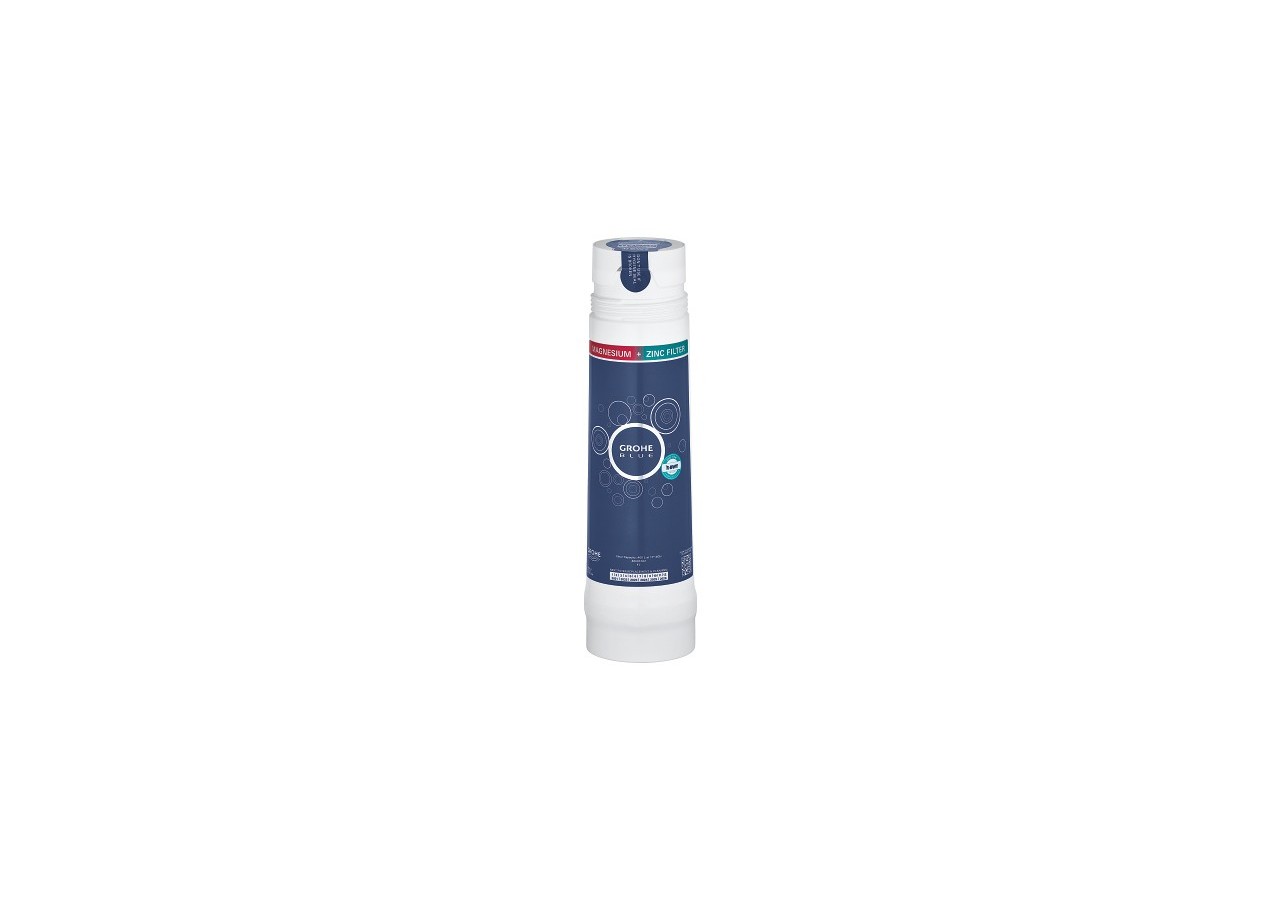 Transformez votre eau du robinet en une eau délicieuse enrichie en magnésium et en zinc grâce à GROHE Blue et au filtre GROHE Blue Magnesium+ zinc, qui rehausse l'arôme de l'eau et l'enrichit en magnésium et en zinc. Le magnésium, un minéral vital pour la santé, est bon pour tout le monde et encore meilleur pour les athlètes et les diabétiques ! Le zinc est l'un des oligo-éléments les plus importants et soutient le système immunitaire de l'organisme. Le filtre, qui a une capacité d'environ 400 litres à 17° dGH (dureté allemande), fonctionne en 5 étapes : d'abord la pré-filtration élimine les grosses particules comme le sable et la saleté. Ensuite, la pré-filtration au charbon actif élimine certaines particules provenant de l'acheminement de l'eau. Ensuite, l'échangeur d'ions réduit les substances telles que le calcaire et les métaux lourds et ajoute jusqu'à 35 mg/l de magnésium et jusqu'à 3 mg/l de zinc. Ensuite, la filtration sur charbon actif réduit les substances responsables du goût et de l'odeur désagréables tel que le chlore. Et enfin, la filtration fine réduit les particules fines. Le résultat est une eau au goût agréable directement du robinet ! Le filtre est compatible avec les systèmes GROHE Blue Home, GROHE Blue Professionnel et GROHE Blue Pure. Le remplacement du filtre est facile : il suffit de dévisser l'ancien filtre, d'insérer la cartouche de nettoyage GROHE (40434001)*, de lancer le processus de nettoyage puis de le remplacer par le nouveau filtre. * Vous devrez également acheter un adaptateur réutilisable pour cartouche de nettoyage GROHE Blue (40694000).