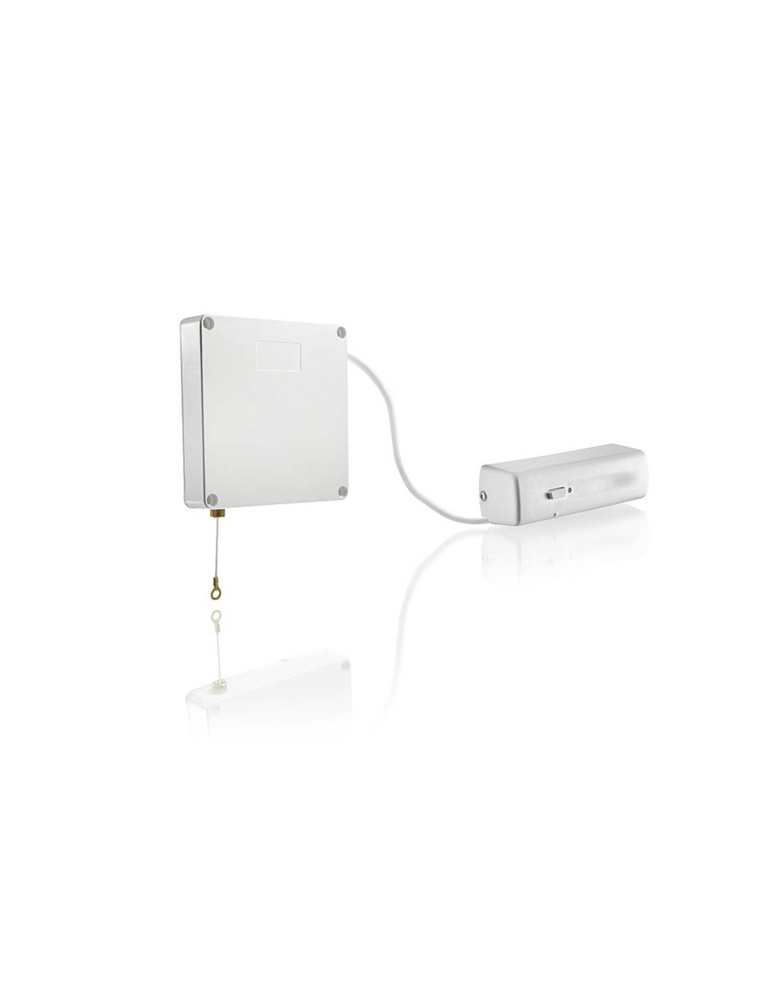 Il fonctionne avec un sustème magnétique pour éviter un déclanchement due au vent ou à un courant d'air. Ule cordelette est fixée à la dernière lame du volet, en cas d'intrusion, elle suit le volet et délanche l'alarme. Cette dernière a un effet dissuasif et évite un ris de vitre ou une fenêtre forcée.