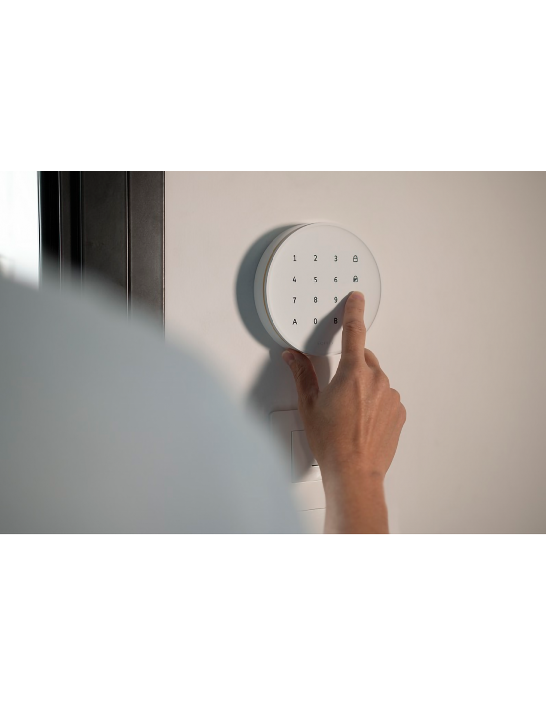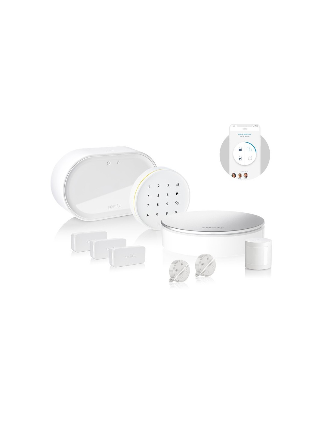 L'alarme s’active et se désactive depuis chez vous grâce au badge télécommande et clavier à codes ou à distance avec l’application gratuite Somfy Protect.