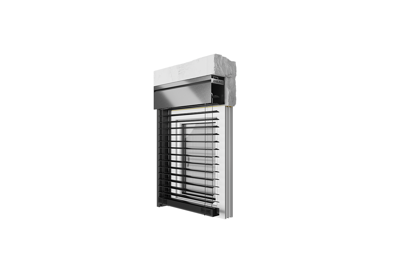 Système de store BSO avec caisson en aluminium. Linteau, disponible en version visible ou encastrée.