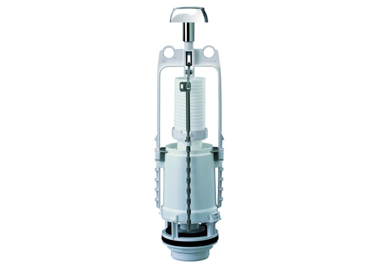 Mécanisme de chasse simple volume garantie 10 ans, à étrier permettant la fixation du couvercle du réservoir.