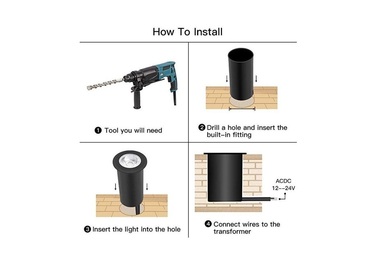 Le spot est livré avec un câble de 1 mètre de long et un tube en plastique, facilitant son montage sur béton.