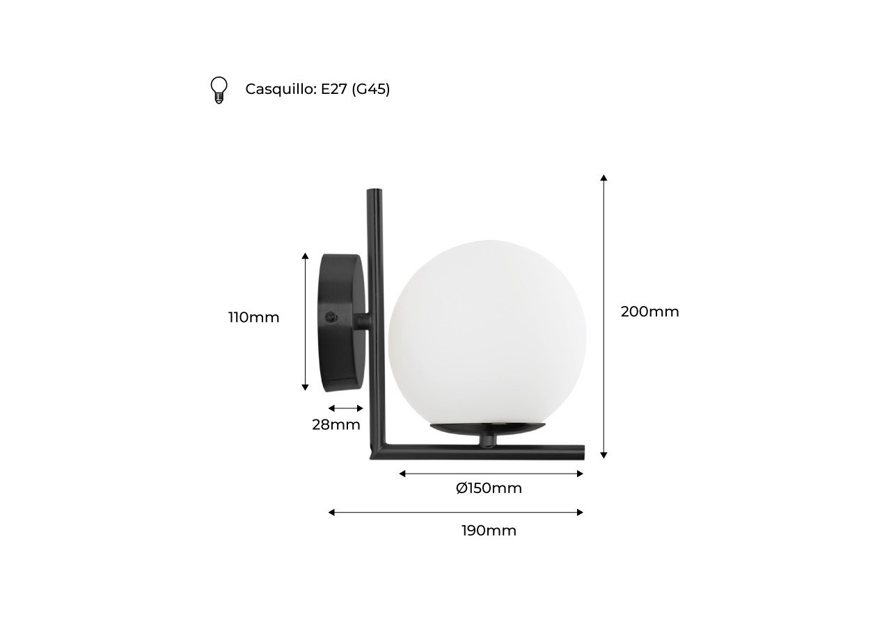Que ce soit dans votre salon, votre chambre ou votre bureau, cette lampe s'intègre harmonieusement à tous les environnements. Elle apporte une personnalité unique à votre espace en créant une atmosphère accueillante et chaleureuse.L'applique "Margaret" est compatible avec une ampoule sphérique E27 G45 (non incluse) d'une puissance maximale de 40W, vous permettant de choisir l'intensité lumineuse qui correspond à vos préférences.