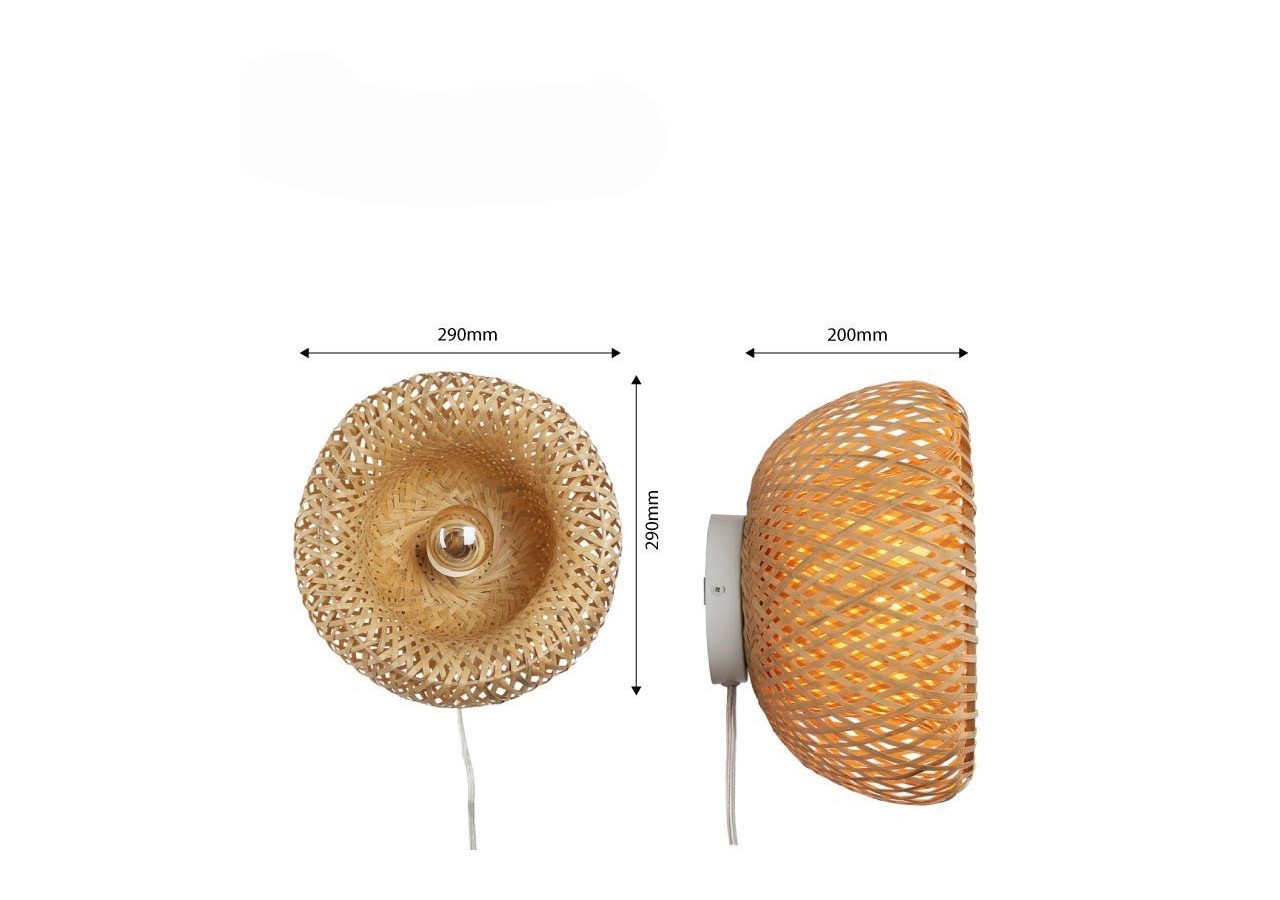 Applique murale en tressage d'osier, avec un design en forme de dôme rond. Au centre de la lampe se trouve un support pour une ampoule LED E27 (non incluse). L'osier de la lampe Round permet à la lumière directe et indirecte de passer à l'extérieur, créant ainsi des jeux de lumières élégants sur le mur. Si vous installez une ampoule LED à filament, vous obtiendrez un éclairage chaleureux parfait pour les environnements vintage à dominante blanche et les éléments en bois.