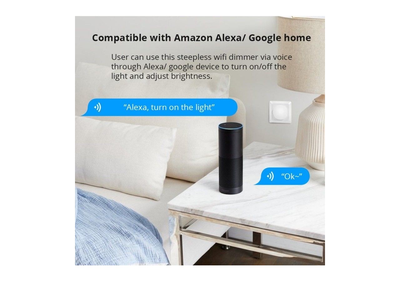- Variateur WiFi. Fonctionne avec l'application Tuya, compatible avec Amazon Alexa et Google Home.