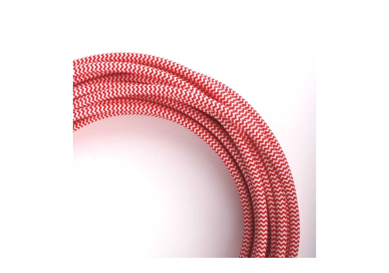 Câble électrique rond recouvert de tissu effet soie ZigZag, rouge et blanc