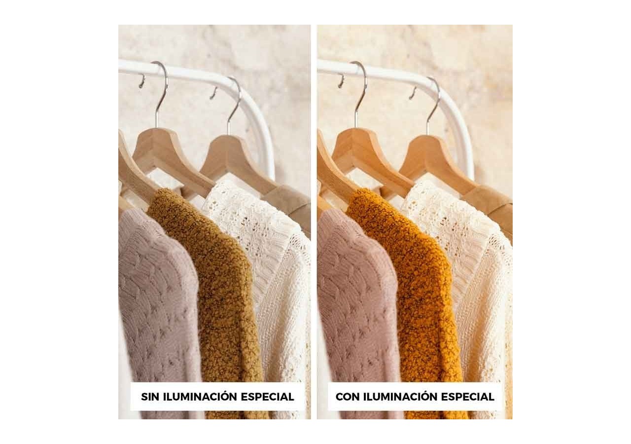 Avec une consommation de 36W, c'est une lampe parfaite pour mettre en valeur les couleurs des vêtements (mode et détail). Elle est extrêmement utile pour un usage professionnel et commercial : boutiques de vêtements, centres commerciaux, magasins de détail ou boutiques dédiées aux produits textiles.