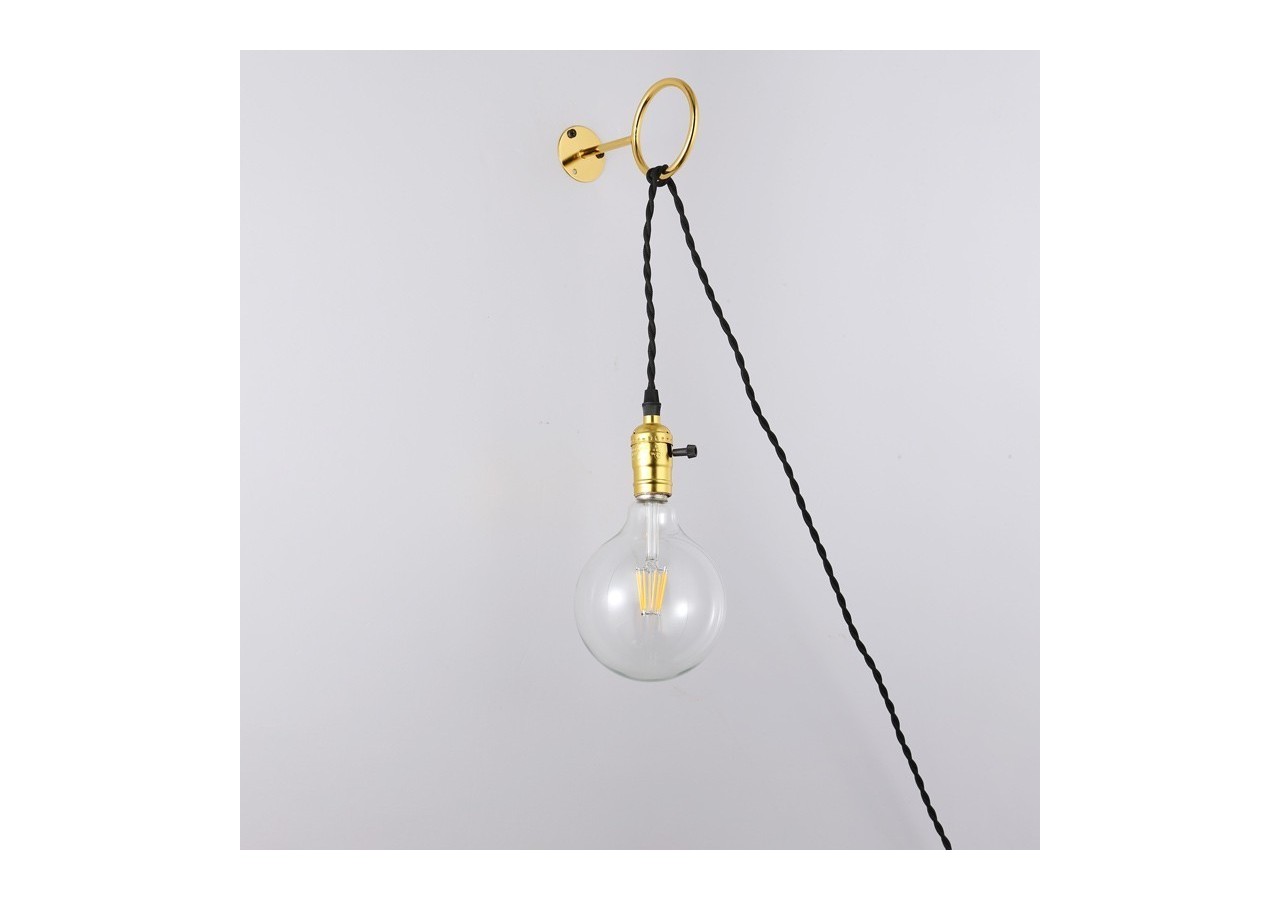 Le produit mesure 85x160mm et peut être installé de plusieurs façons, en posant l'ampoule E27 (non incluse ) sur le dessus de l'anneau ou en la suspendant au câble avec un simple nœud. Le câble de 240 cm est fait de corde et est de couleur noire. Il se branche directement sur le mur. Nous vous recommandons d'assortir le produit d'une ampoule à filament E27 chaude (voir accessoires ou produits connexes) pour un résultat plus esthétique et plus design. Le support de lampe s'intègre au design avec élégance et simplicité. Il contient également un interrupteur qui est parfait pour une utilisation pratique et commode. Fabriqué en aluminium avec une finition de couleur dorée. Ces matériaux mettent en valeur la texture de la lampe, qui est facile à nettoyer, inoxydables et douce au toucher. Vous pouvez utiliser l'applique murale pour lire au chevet du lit, dans les couloirs, dans les restaurants, les hôtels ou n'importe où à l'intérieur de votre maison ou de votre entreprise. Exclusivement pour une utilisation en intérieur, indice de protection IP20.