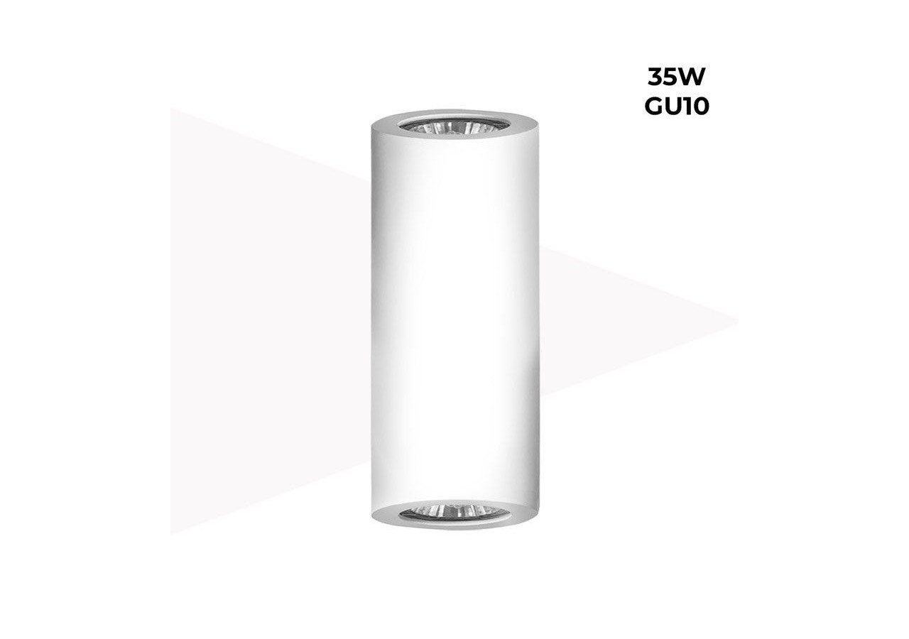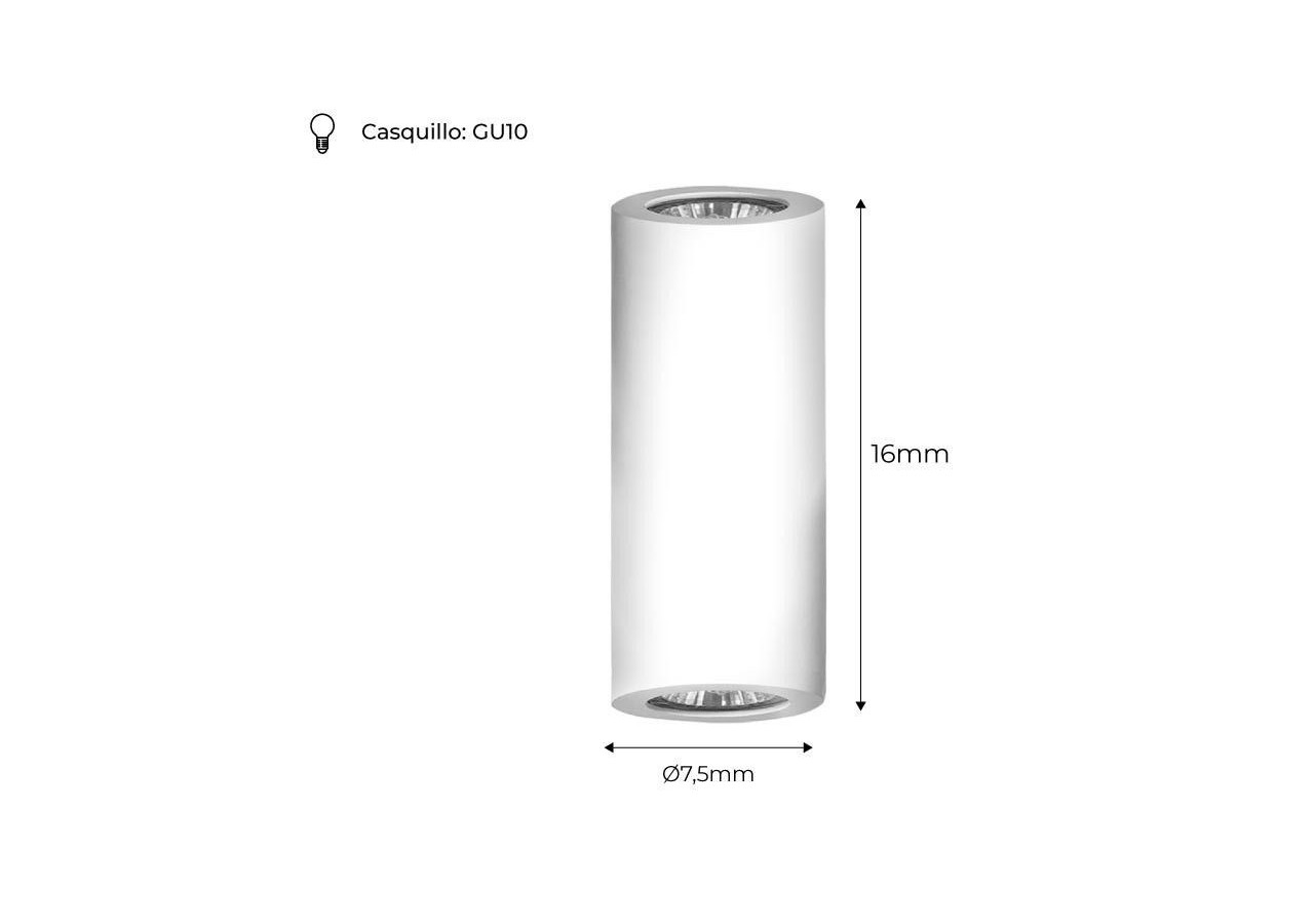 Elle fonctionne avec une ampoule de type GU10, peut être utilisé à l'intérieur et à l'extérieur (toujours dans des endroits couverts et sans contact avec la pluie). Elle peut être intégré à la peinture de la même manière qu'ellepeut être mis en valeur en le peignant dans des couleurs contrastantes par rapport au mur sur lequel elle doit être installé. Cette lampedispose de deux points lumineux. Chaque point lumineux baigne le mur de sa lumière afin de donner une lumière ambiante indirecte sur le mur où se trouve l'applique. Comme elle est réalisée avec une structure en plâtre, elle peut être peinte si nécessaire.