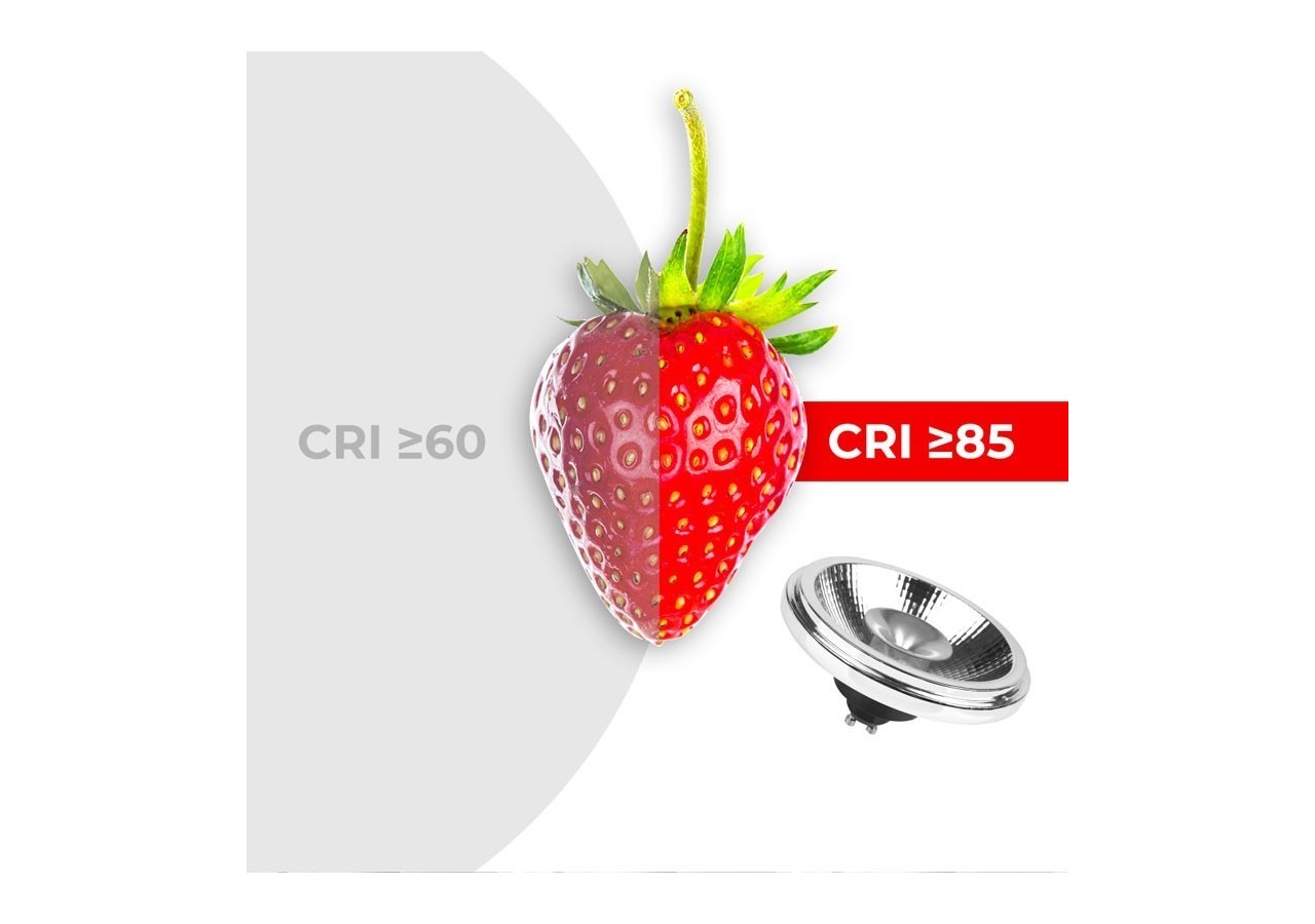 Parfaite pour un usage professionnel, l'ampoule LED AR111 est l'élément d'éclairage idéal pour les magasins et les commerces. Avec un IRC élevé > 85, elle rehaussera la couleur de vos produits et mettra en valeur les zones souhaitées en dirigeant le faisceau lumineux vers les produits voulus, sans éblouir.
