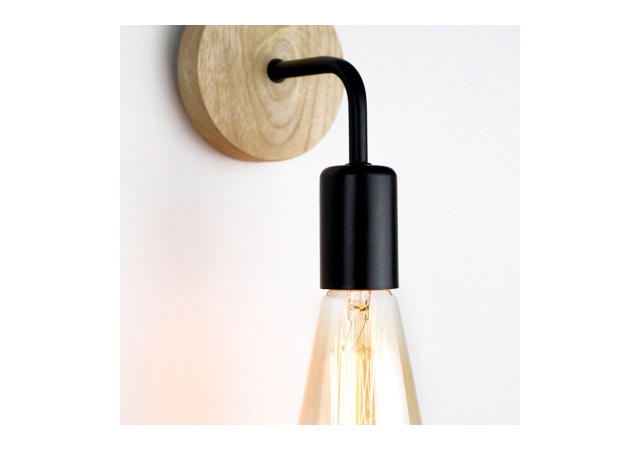 La lampe murale "Morgan" présente un design à la fois vintage et moderne grâce à la combinaison des matériaux. Elle combine parfaitement le bois du fleuron avec la finition métallique noire du corps de la lampe.
