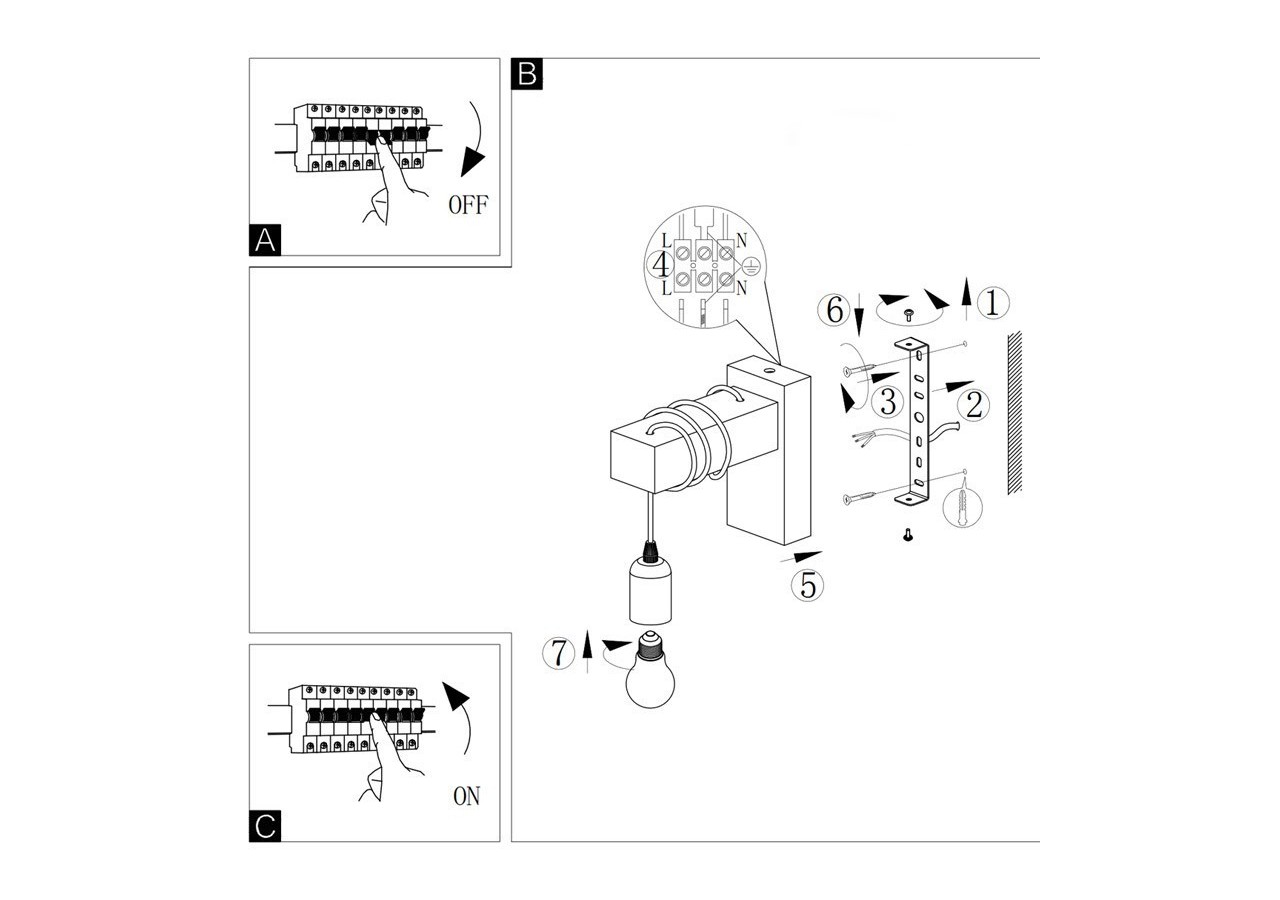 Lampes murales intérieures "Ruder" avec une douille E27, ampoule non incluse. Le fait de ne pas inclure l'ampoule LED E27, vous donne la possibilité de choisir l'ampoule qui s'adapte le mieux aux besoins de l'espace où vous allez installer l'applique. Nous vous recommandons d'installer 1 ampoule LED à filament Edison avec douille E27 pour renforcer l'aspect vintage de l'applique.