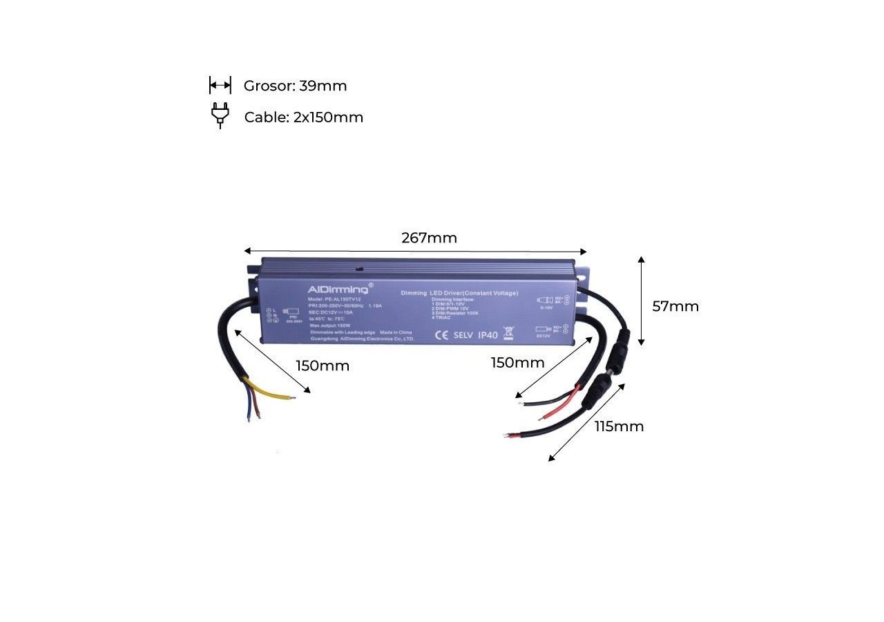 Alimentation LED dimmable TRIAC/0-10V 200-250V-Sortie 12V-10A-120W - PE-AL150TV12 - Barcelona LED