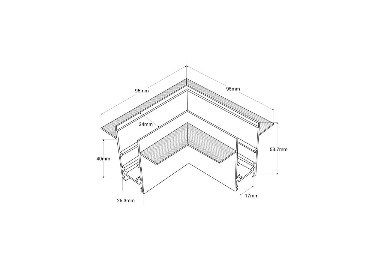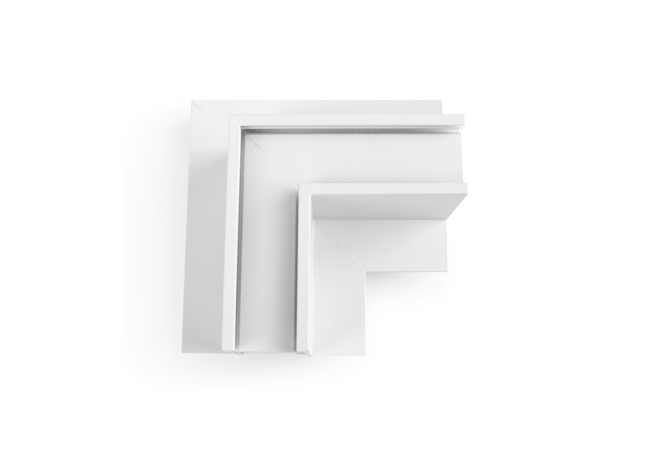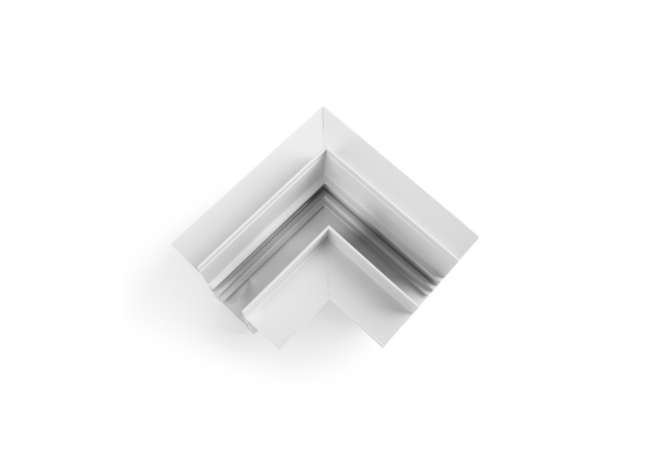 Le connecteur en L permet de raccorder deux sections de rail magnétique encastrées de 20 mm à angle droit (90°), toujours dans le même plan.