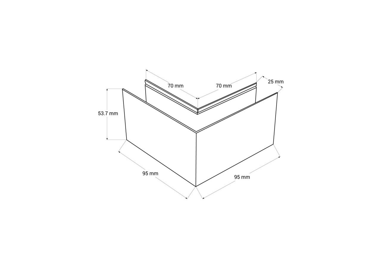 Le connecteur en L permet de raccorder deux sections de rail magnétique en saillie de 20 mm à angle droit (90°), toujours dans le même plan.