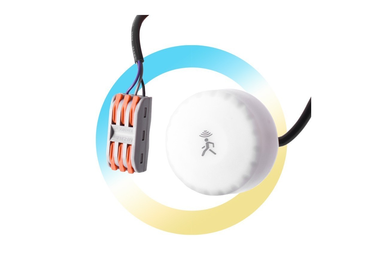 Si vous voulez garder votre éclairage allumé toute la journée, vous pouvez le faire grâce à cette fonction. Le capteur reste à faible intensité pour économiser sur les coûts d'éclairage et pour visualiser l'espace de travail souhaité. Dès qu'un mouvement est détecté, 100 % de sa luminosité s'allume.