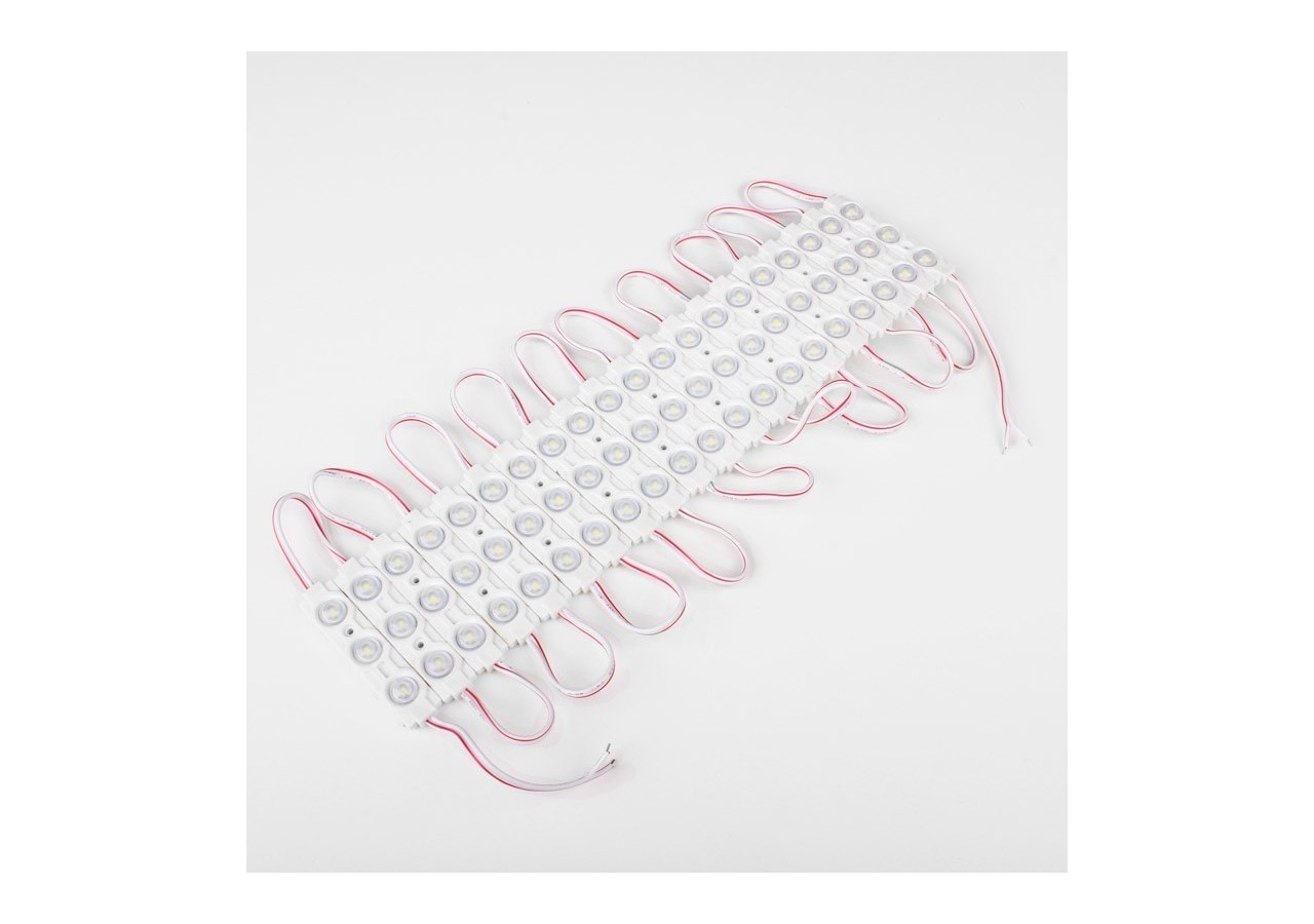 Chaque module LED intègre 3 puces SMD2835 montées sur une pastille en plastique étanche, connectés entre eux par un câble de 70mmd'un module à l'autre.