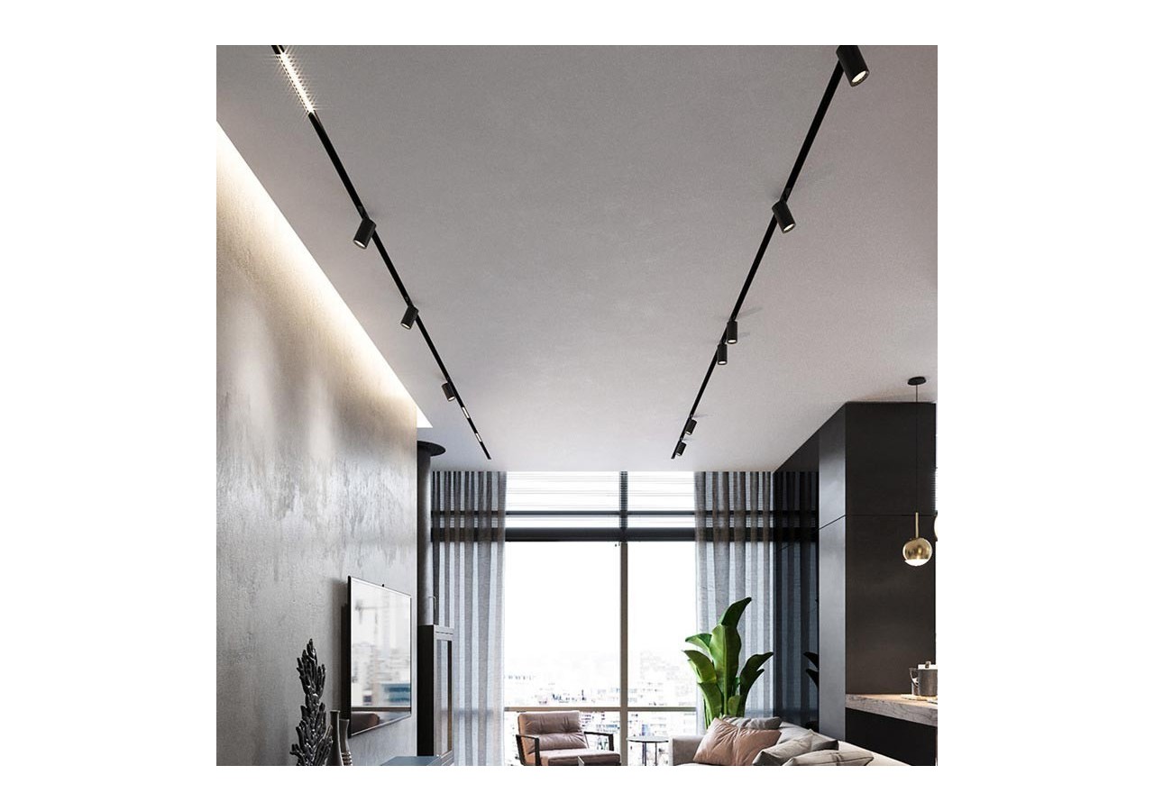 Il apporte du dynamisme à notre espace décoratif et une flexibilité maximale, car il est extrêmement simple à installer et peut être facilement déplacé le long du rail et combiné avec d'autres luminaires.