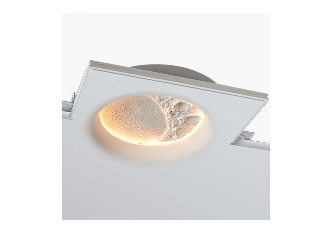 Notre spot encastrable"SIDEREUS"avec son design exclusif en forme de lune, est fabriquée en plâtre et constitue une pièce décorative unique.