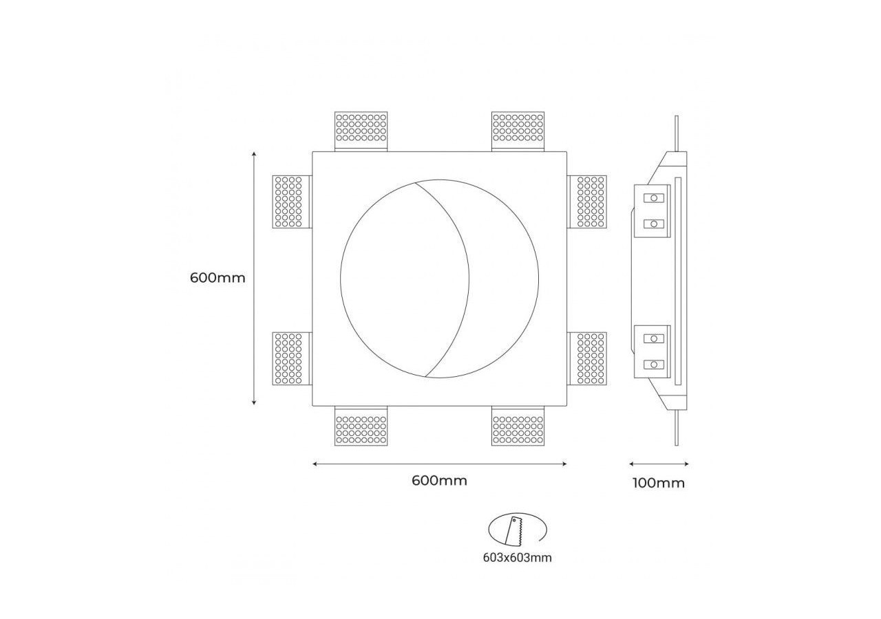 Outre les aspects esthétiques offerts par cette ligne de produits, le plâtre présente plusieurs avantages par rapport aux autres matériaux utilisés dans les luminaires encastrés, étant donné qu'il est inaltérable dans le temps, ininflammable, non toxique, non conducteur d'électricité et qu'il peut être peint dans la couleur souhaitée.
