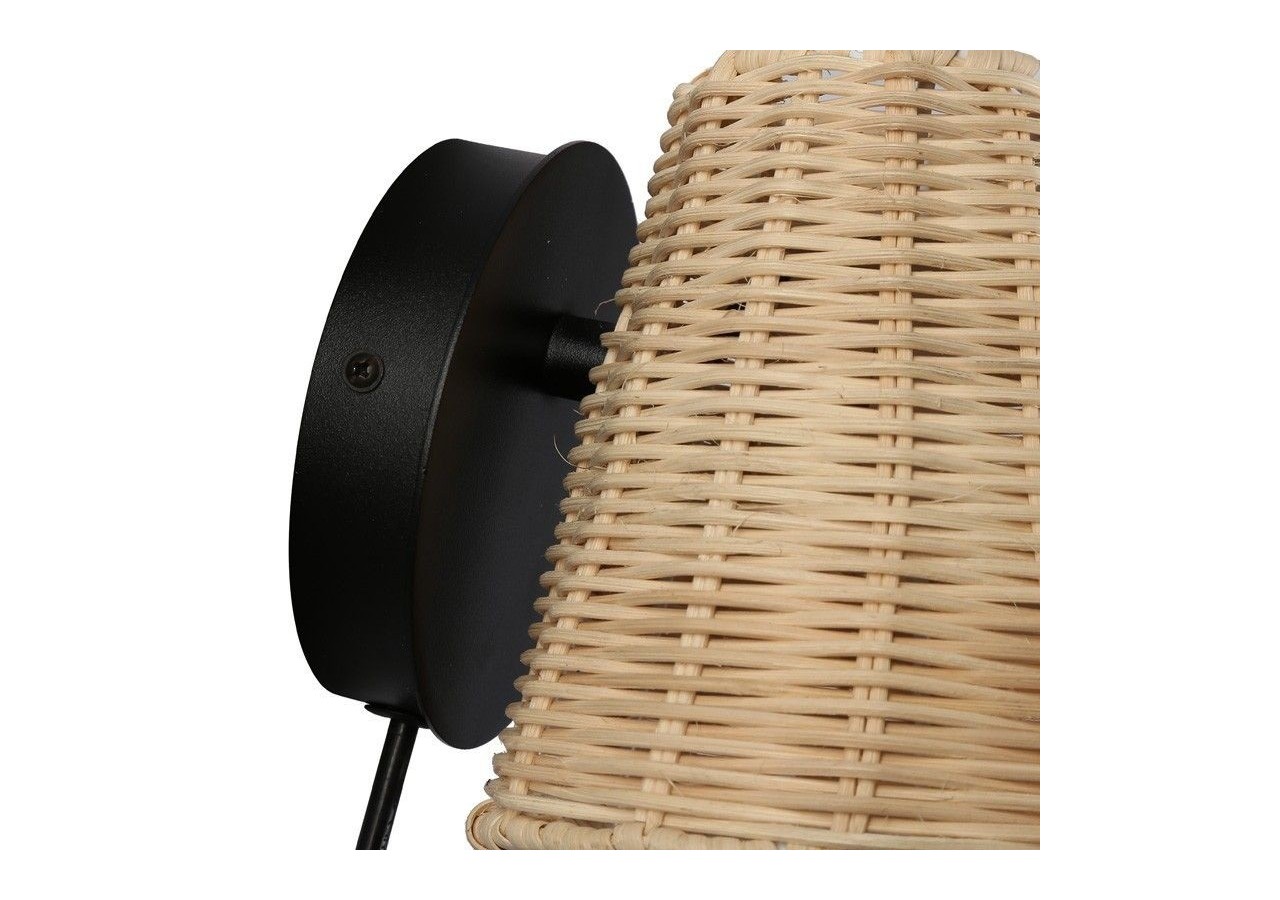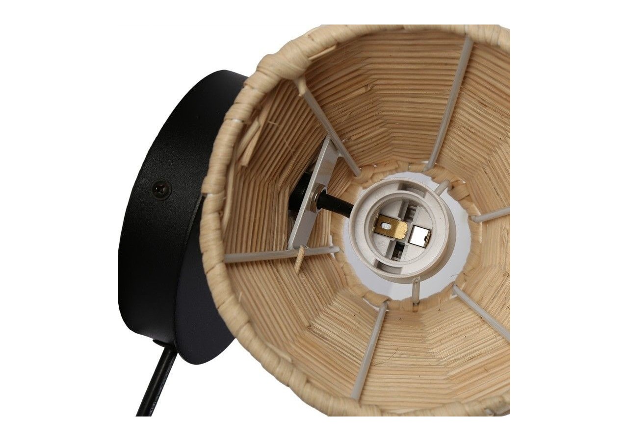 Cette applique intègre la chaleur et la rusticité des fibres naturelles qui contrastent avec le style moderne de sa base en métal noir. Cette combinaison lui confère une grande polyvalence pour s'adapter à différents types de décoration.