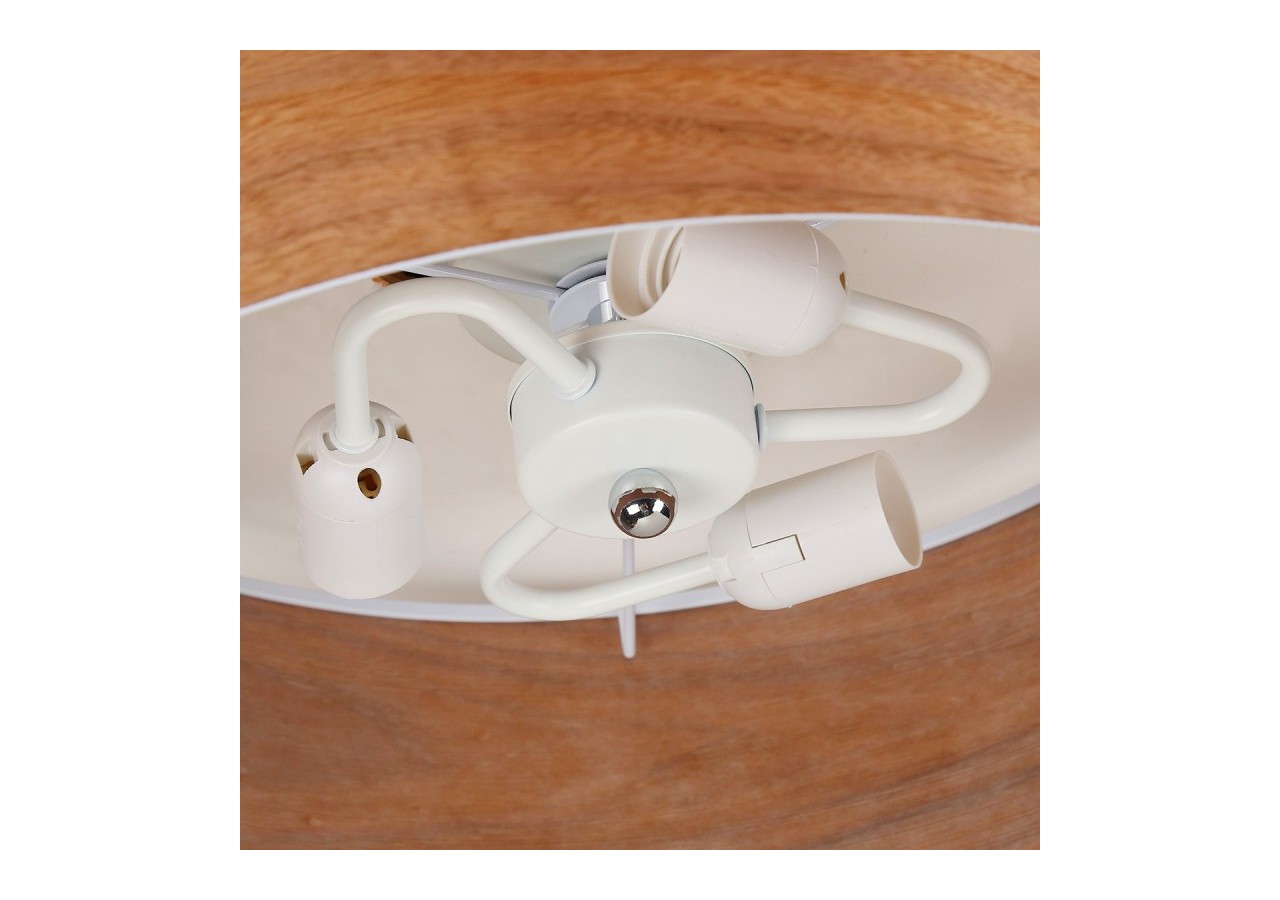 Plafonnier d'inspiration PAULMANN composé d'un abat-jour couleur bois de 45 cm de diamètre et d'un diffuseur en polycarbonate blanc brillant, au design moderne et élégant, en accord avec les dernières tendances décoratives.
