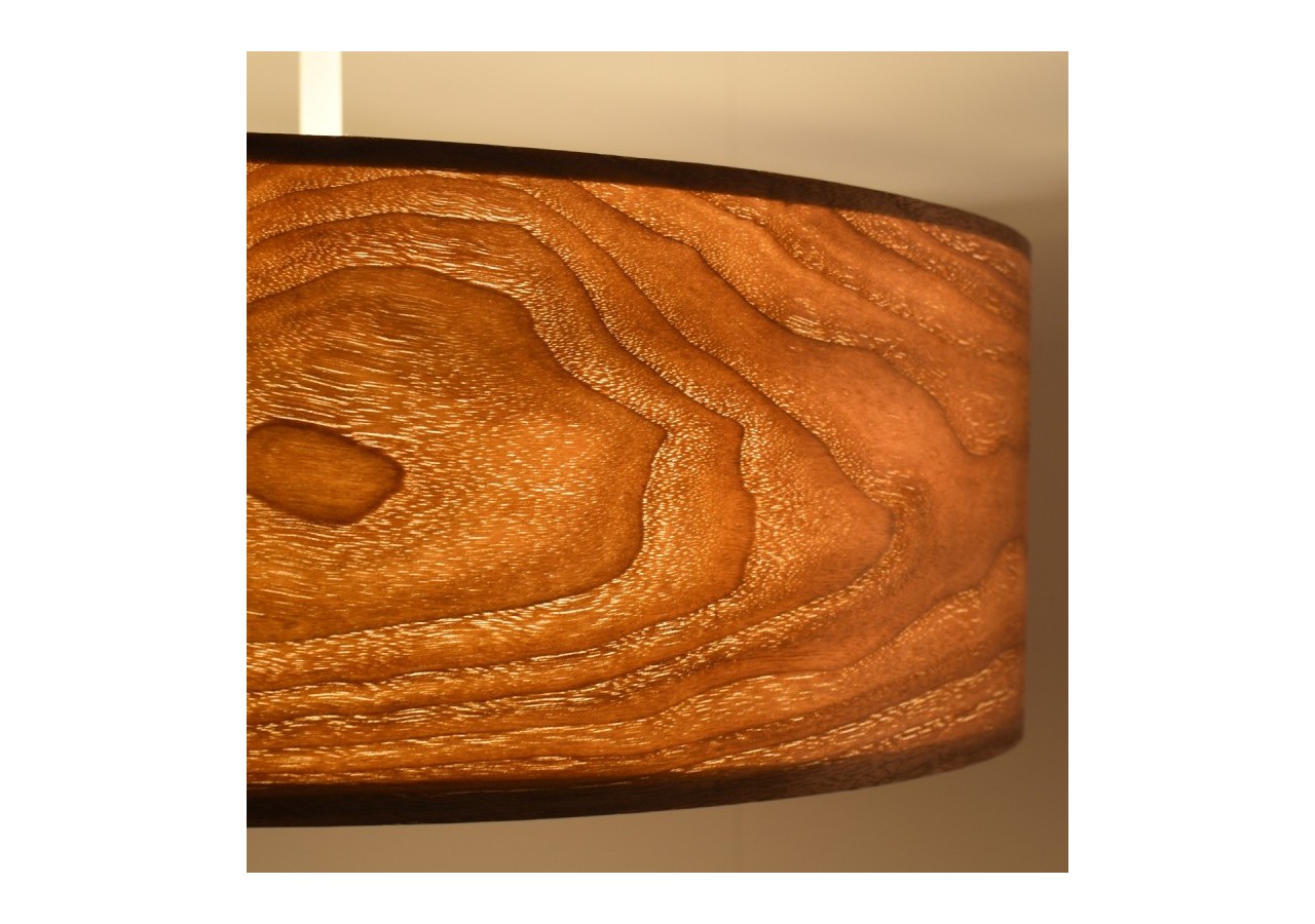 Suspension "MATAGALLS" de inspiration PAULMANN composée d'un abat-jour couleur bois de 45 cm de diamètre et d'un diffuseur en polycarbonate blanc brillant, au design moderne et élégant, suivant les dernières tendances décoratives.